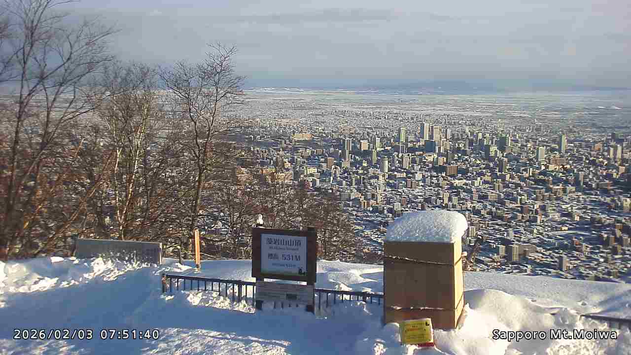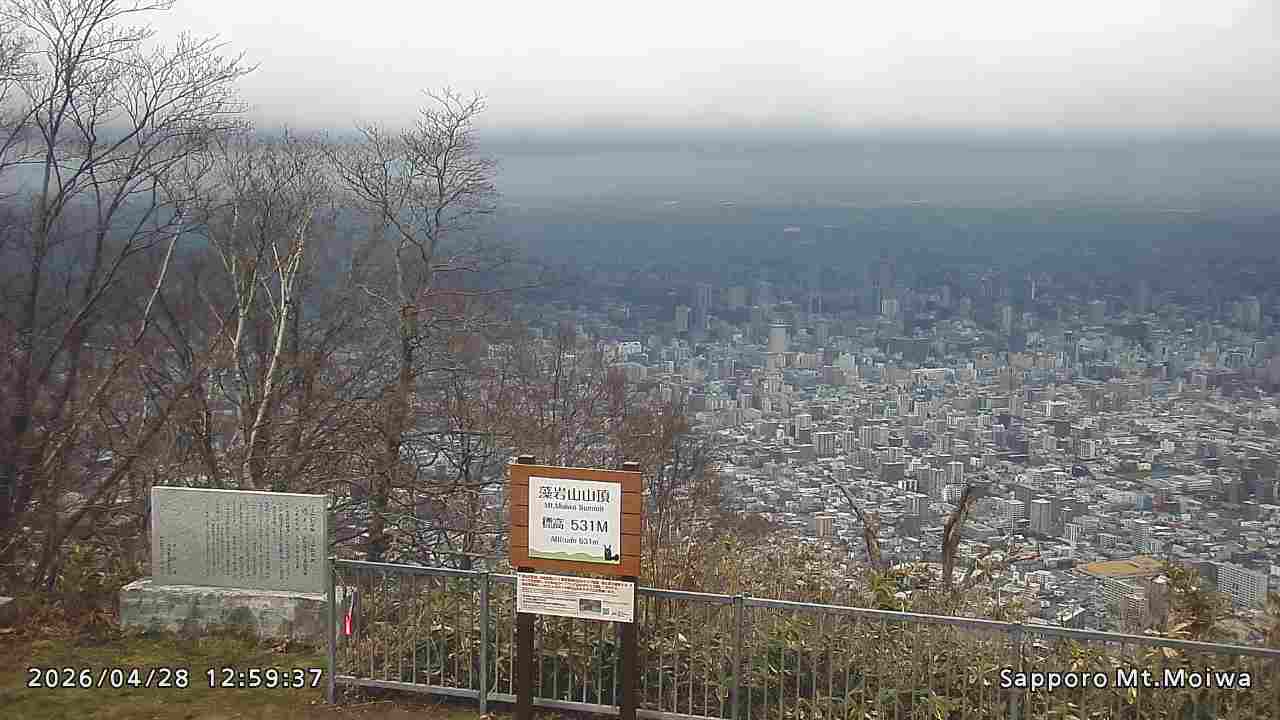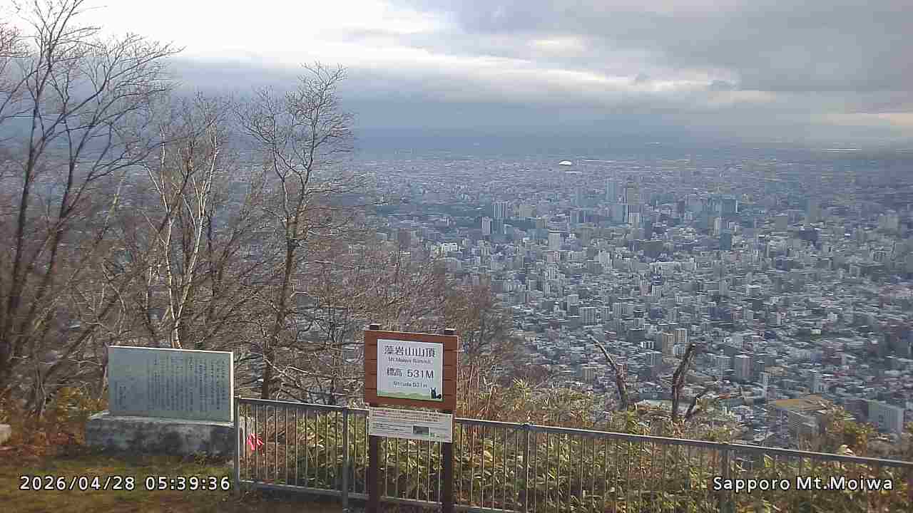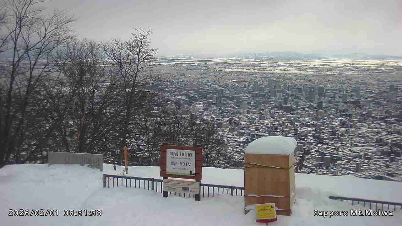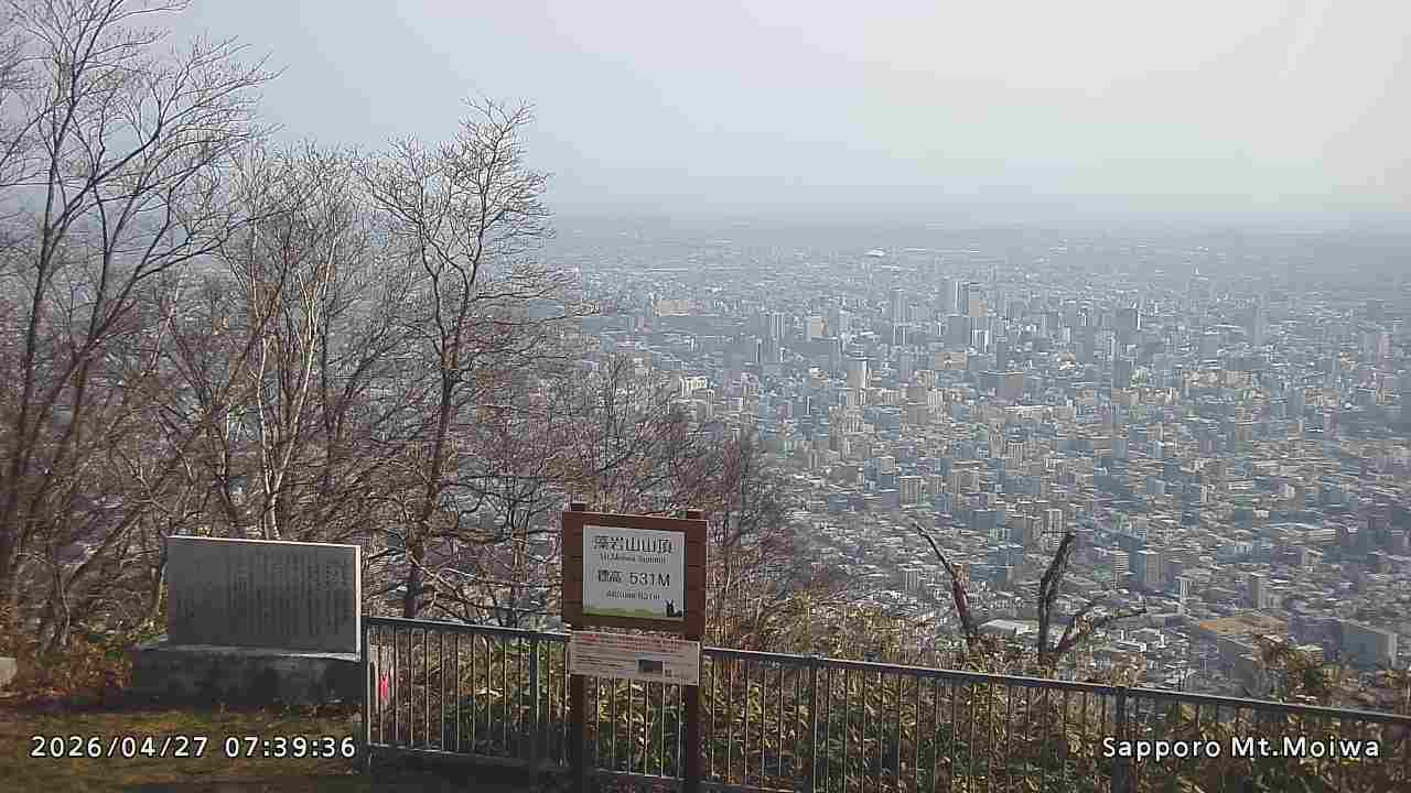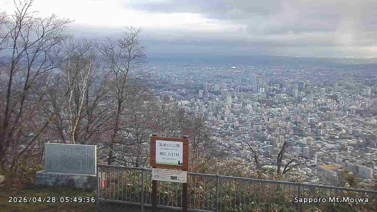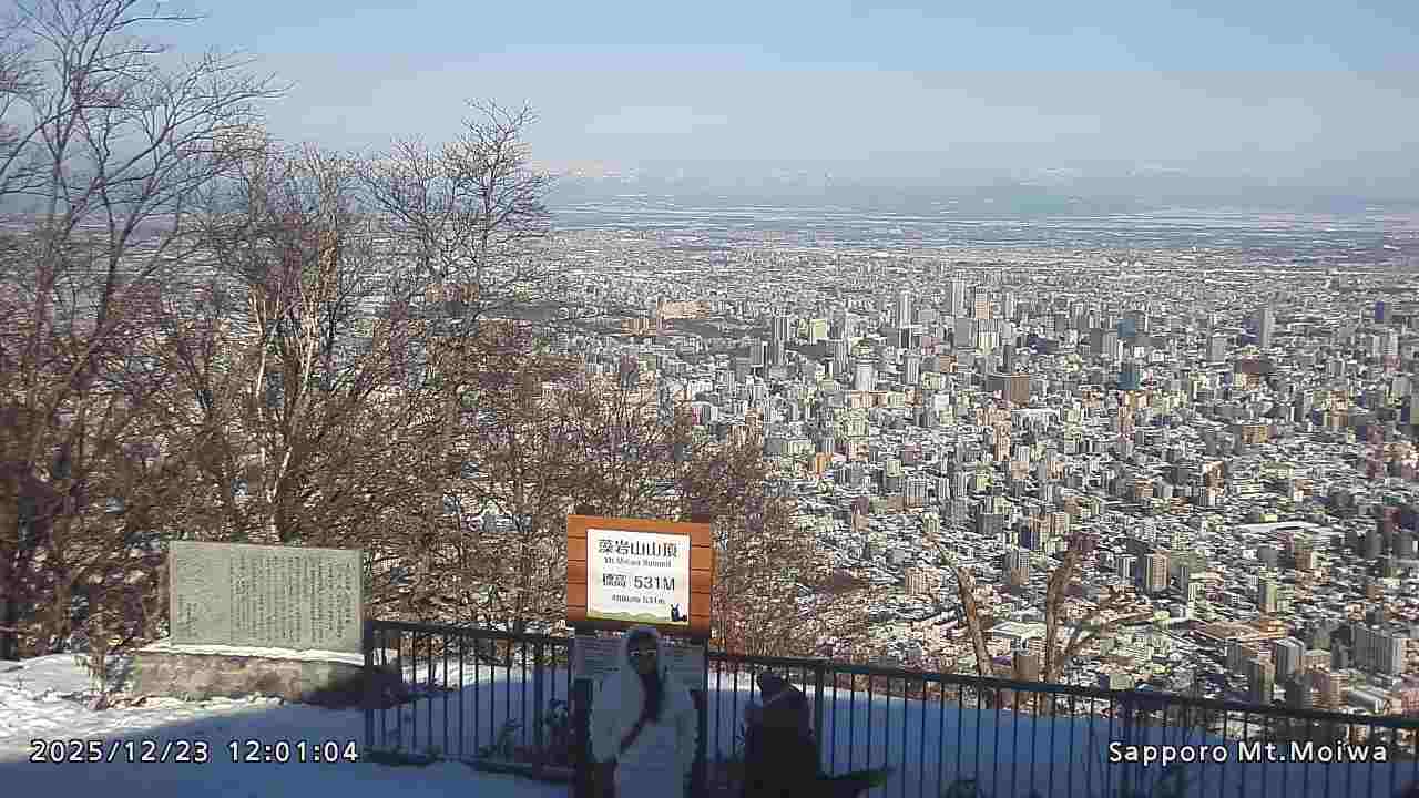 もいわ山山頂の標高看板前にカメラを設置しています。