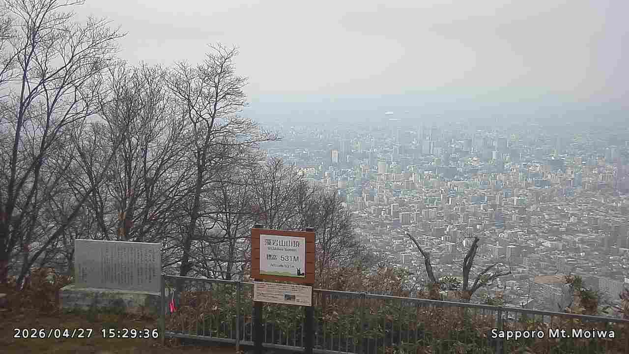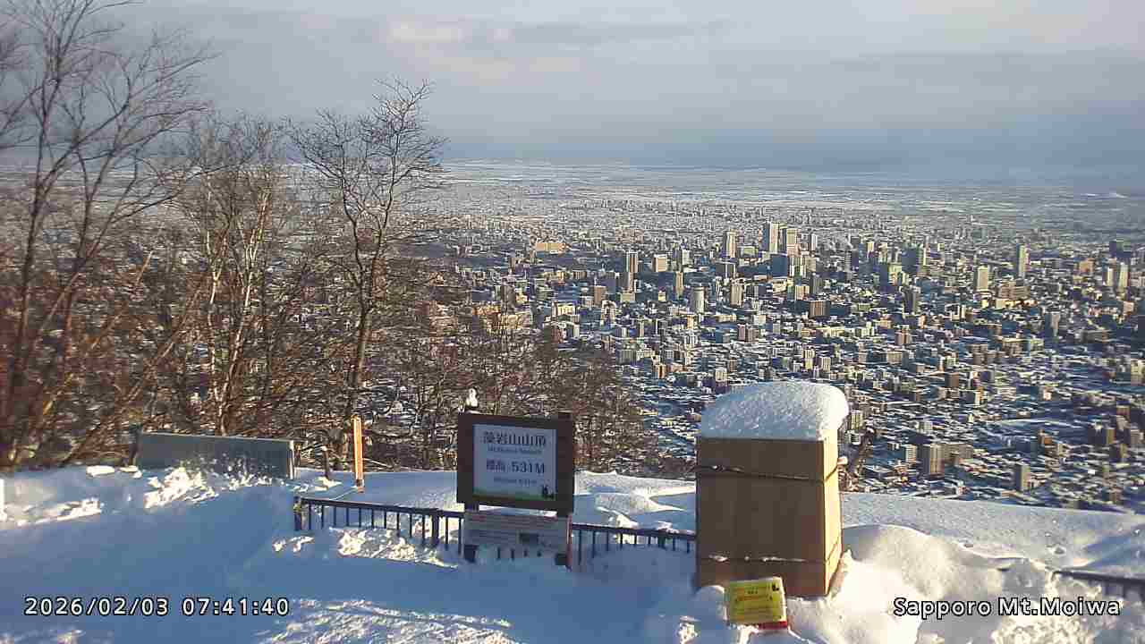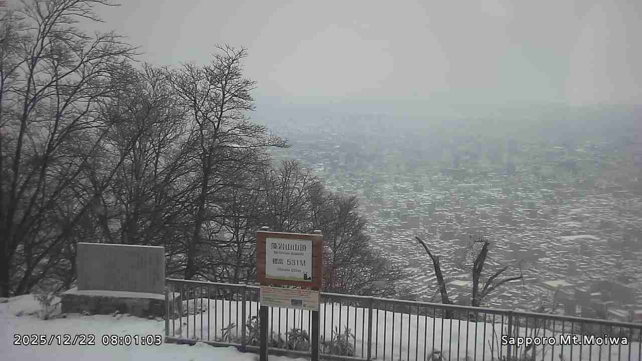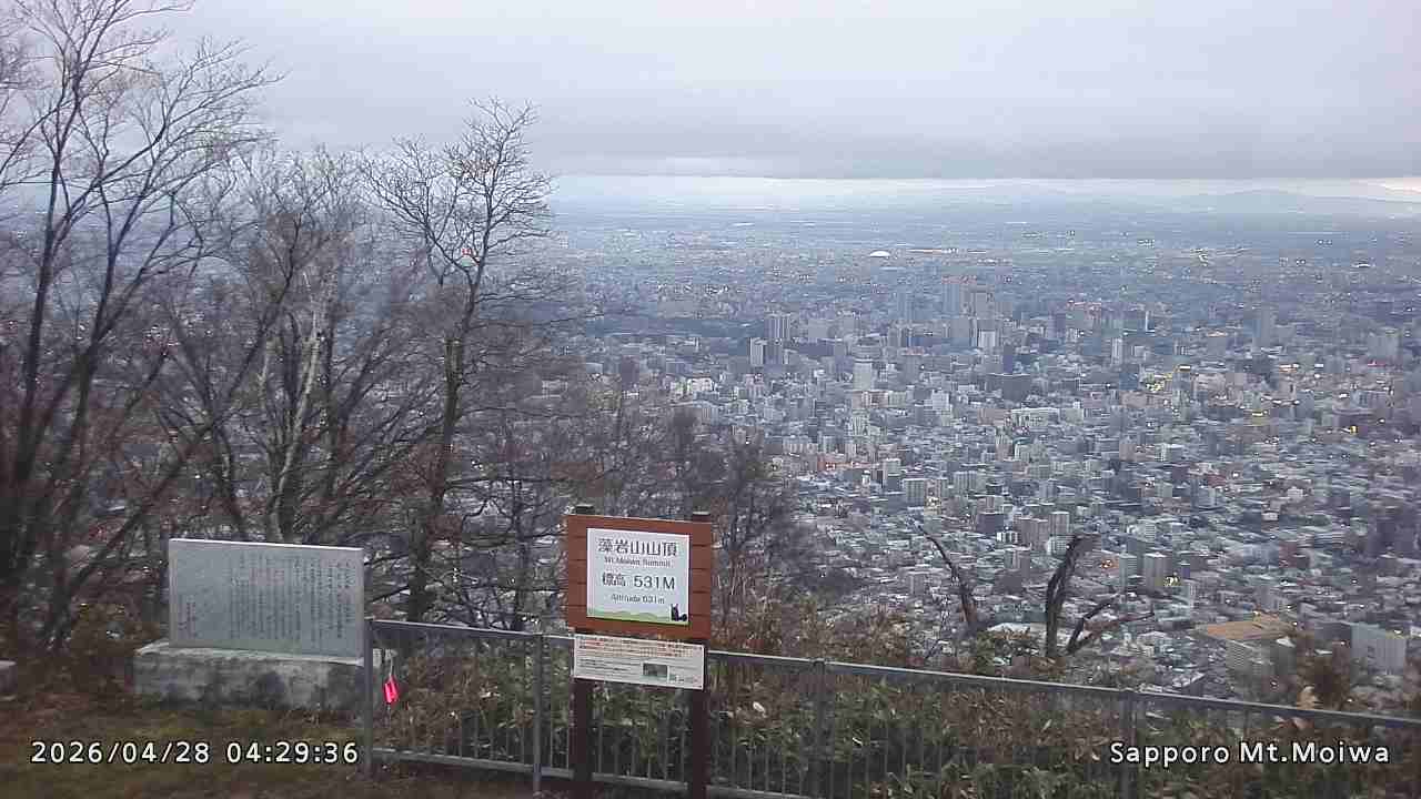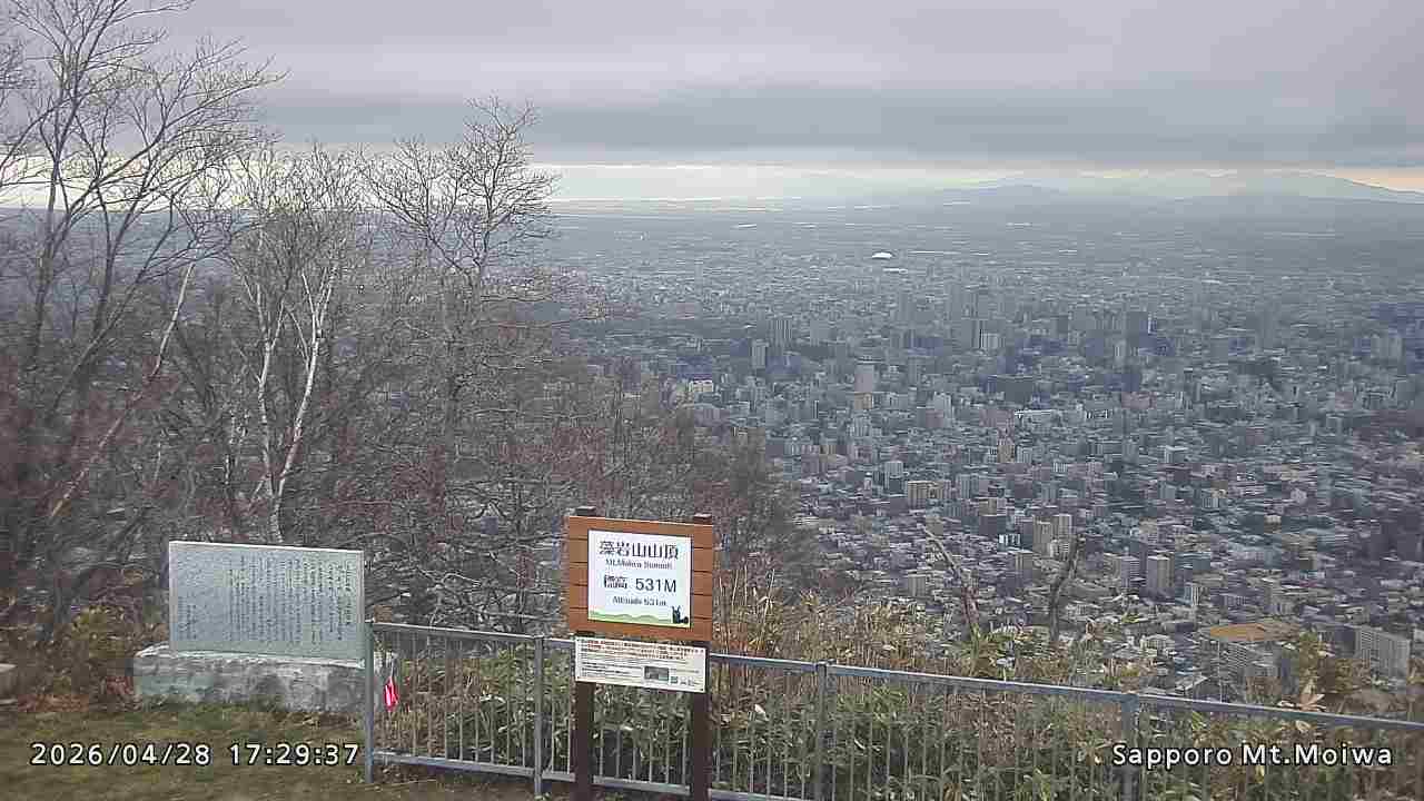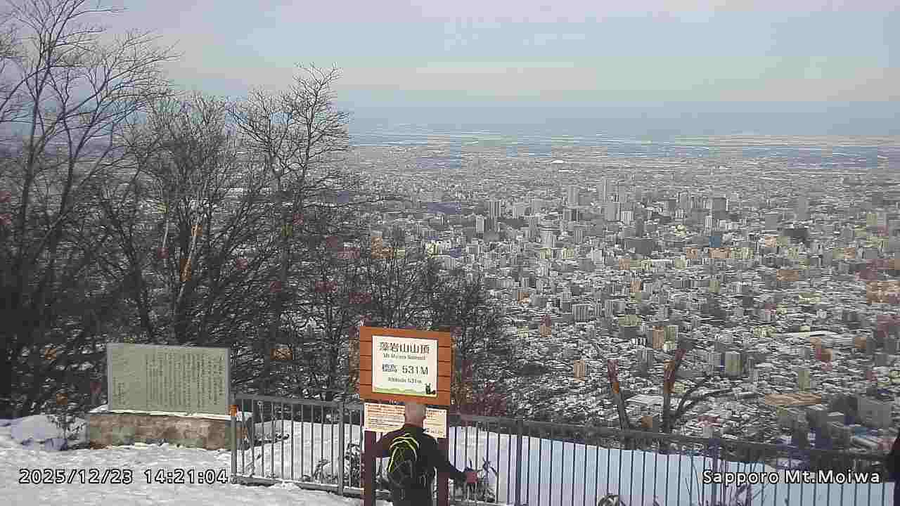 もいわ山山頂の標高看板前にカメラを設置しています。