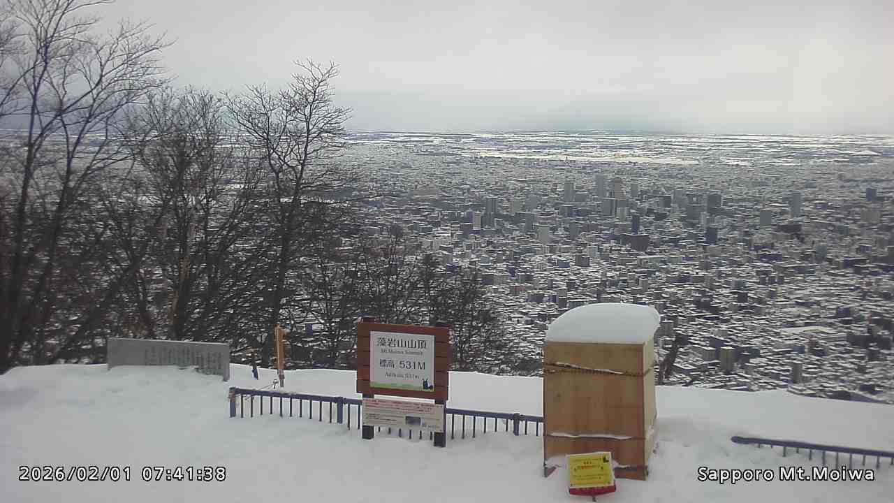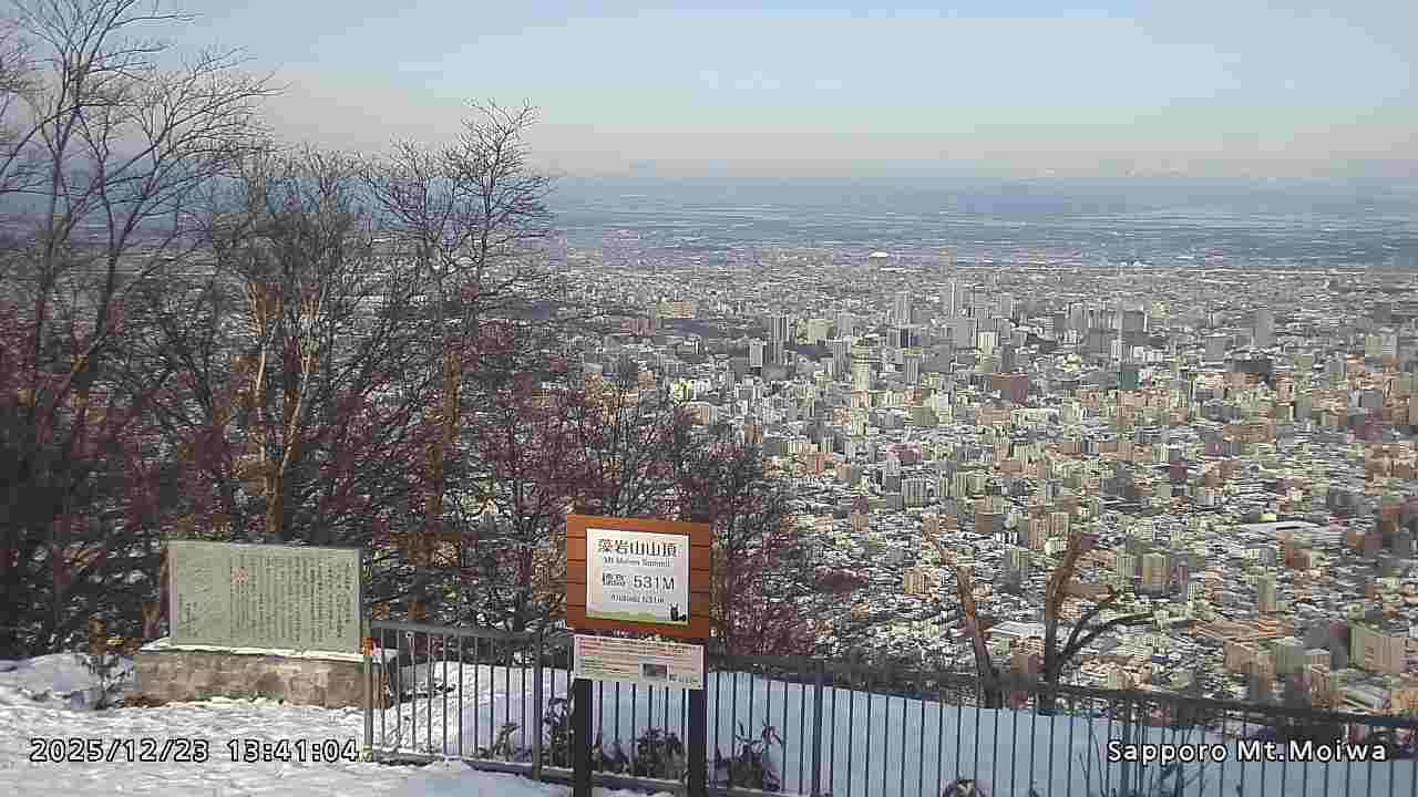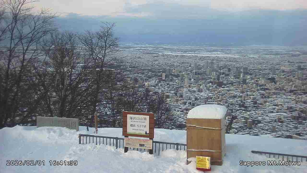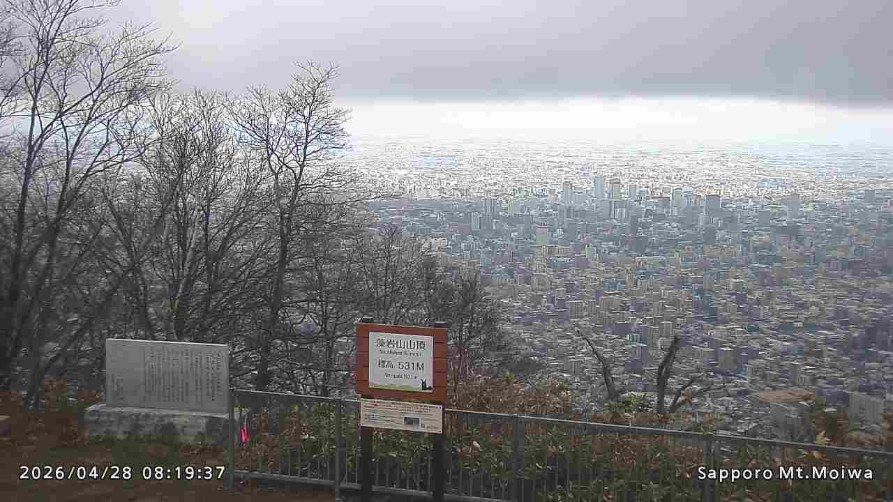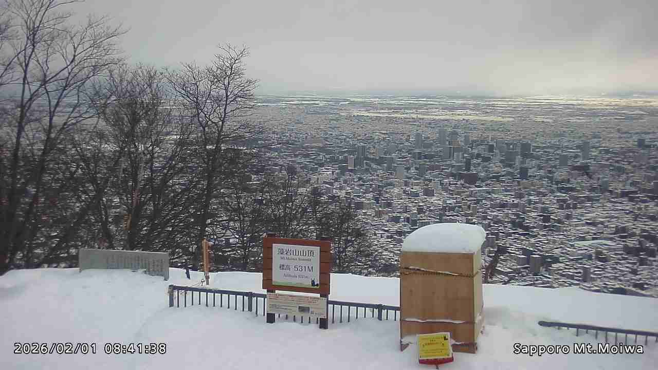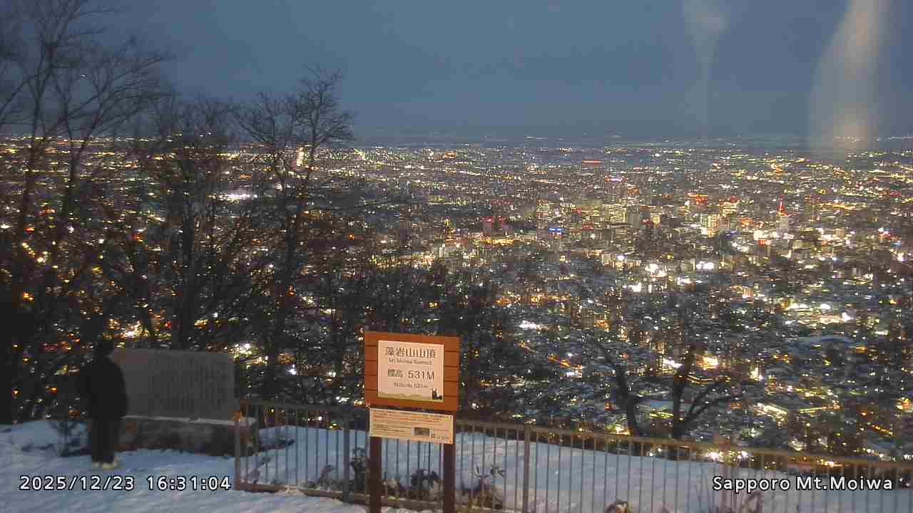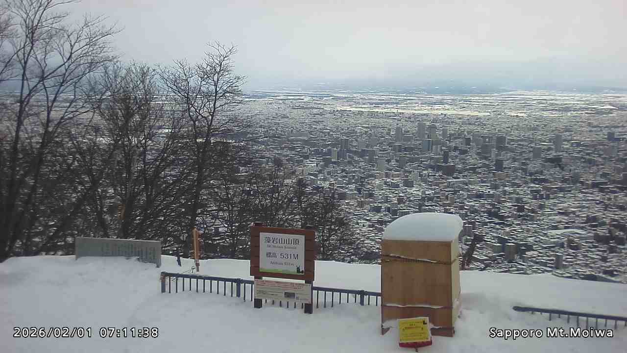 もいわ山山頂の標高看板前にカメラを設置しています。