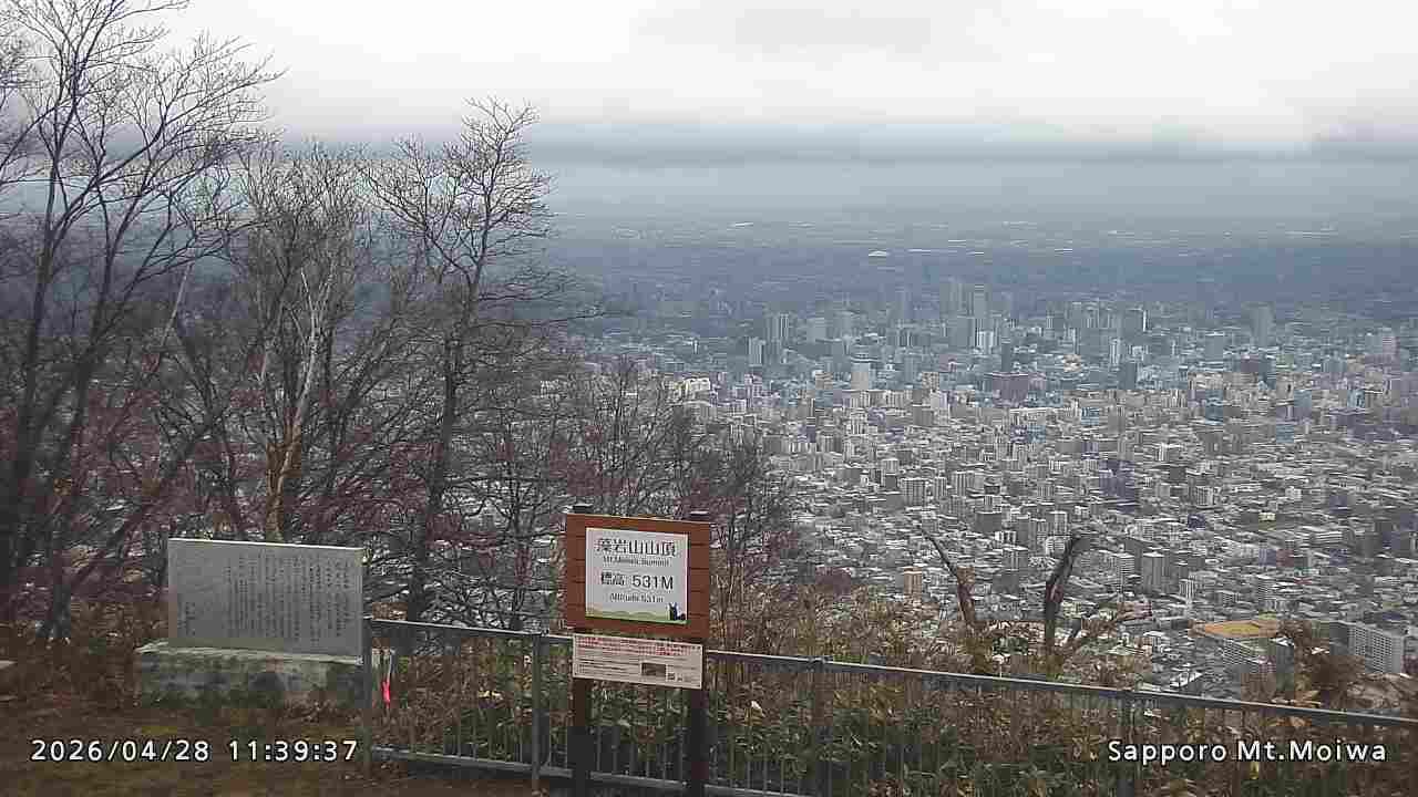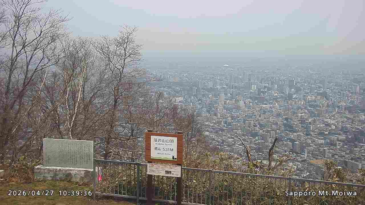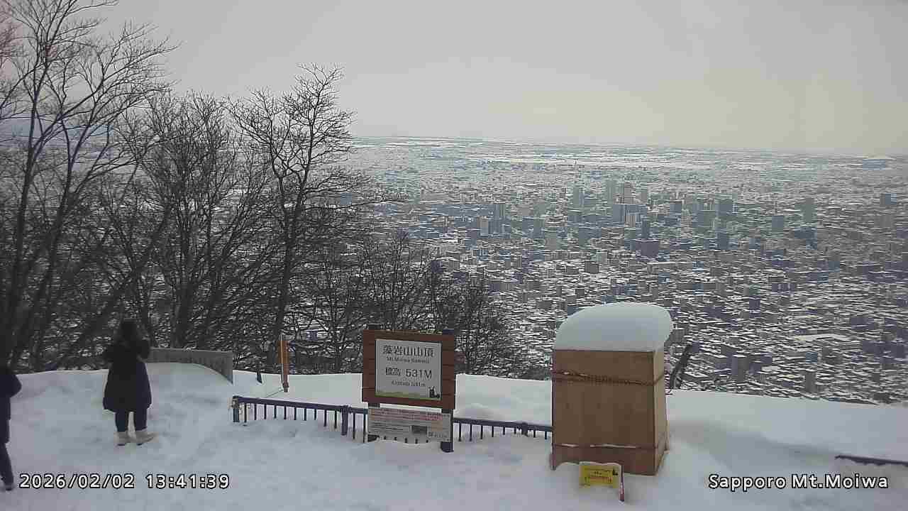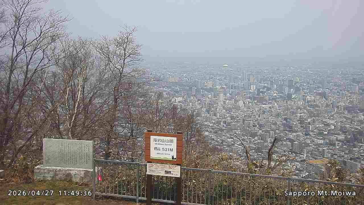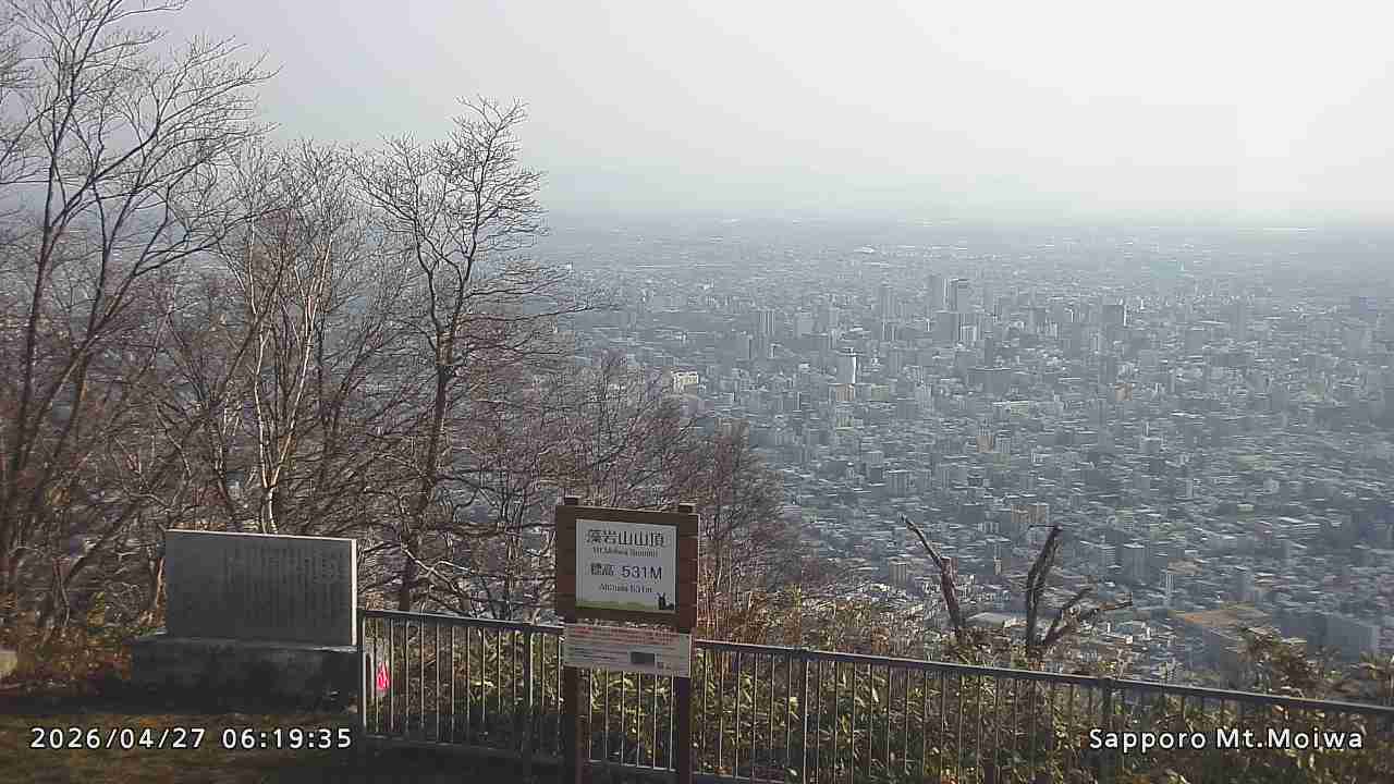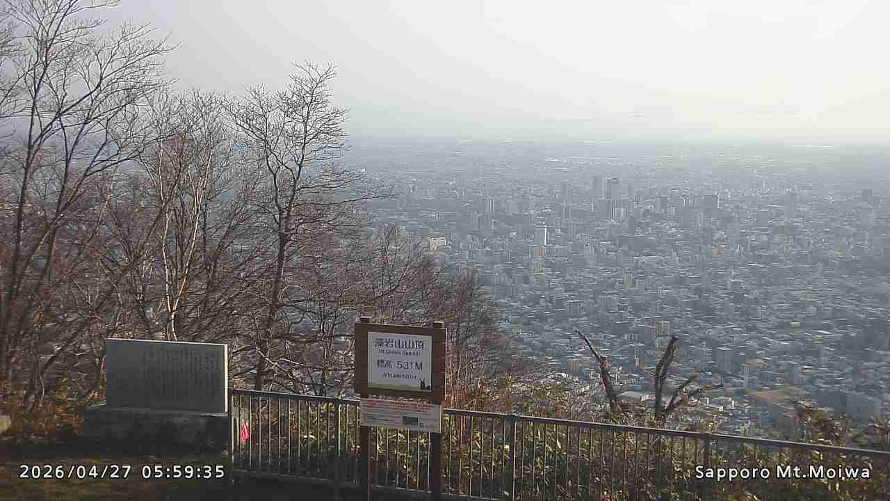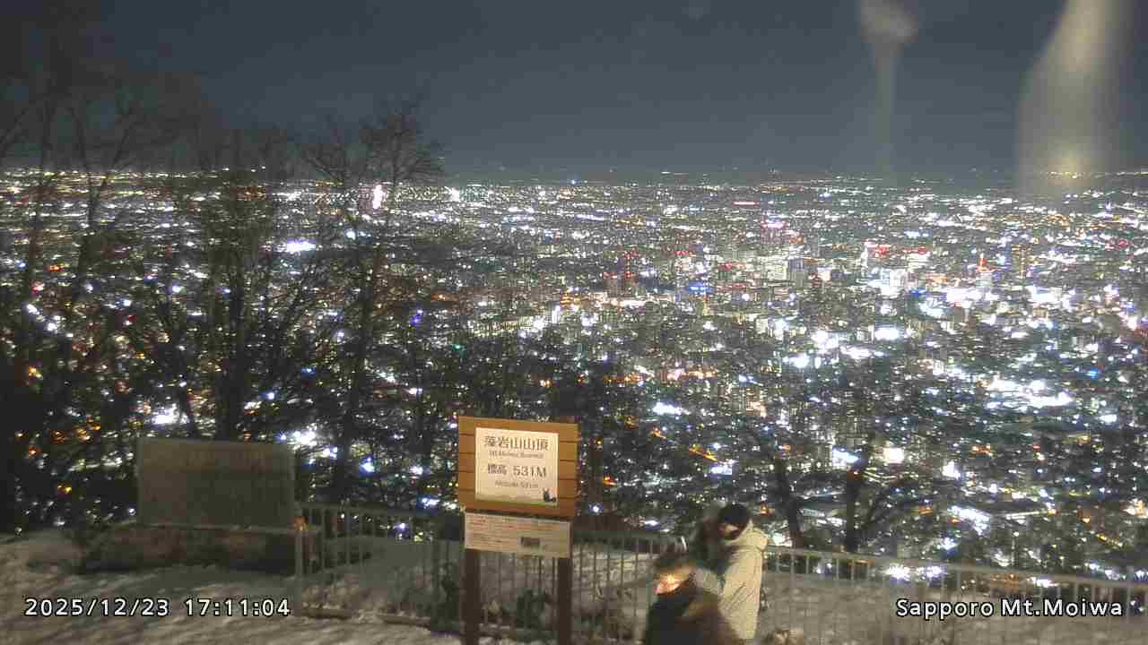 もいわ山山頂の標高看板前にカメラを設置しています。