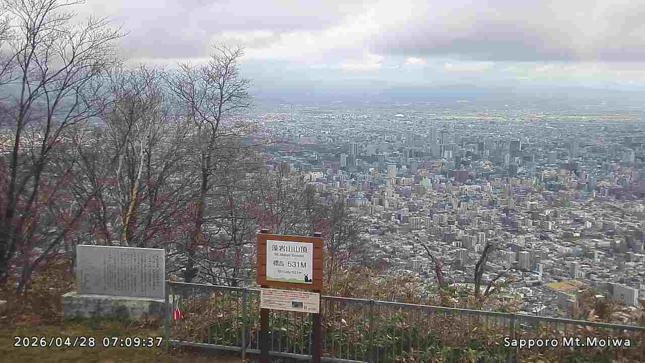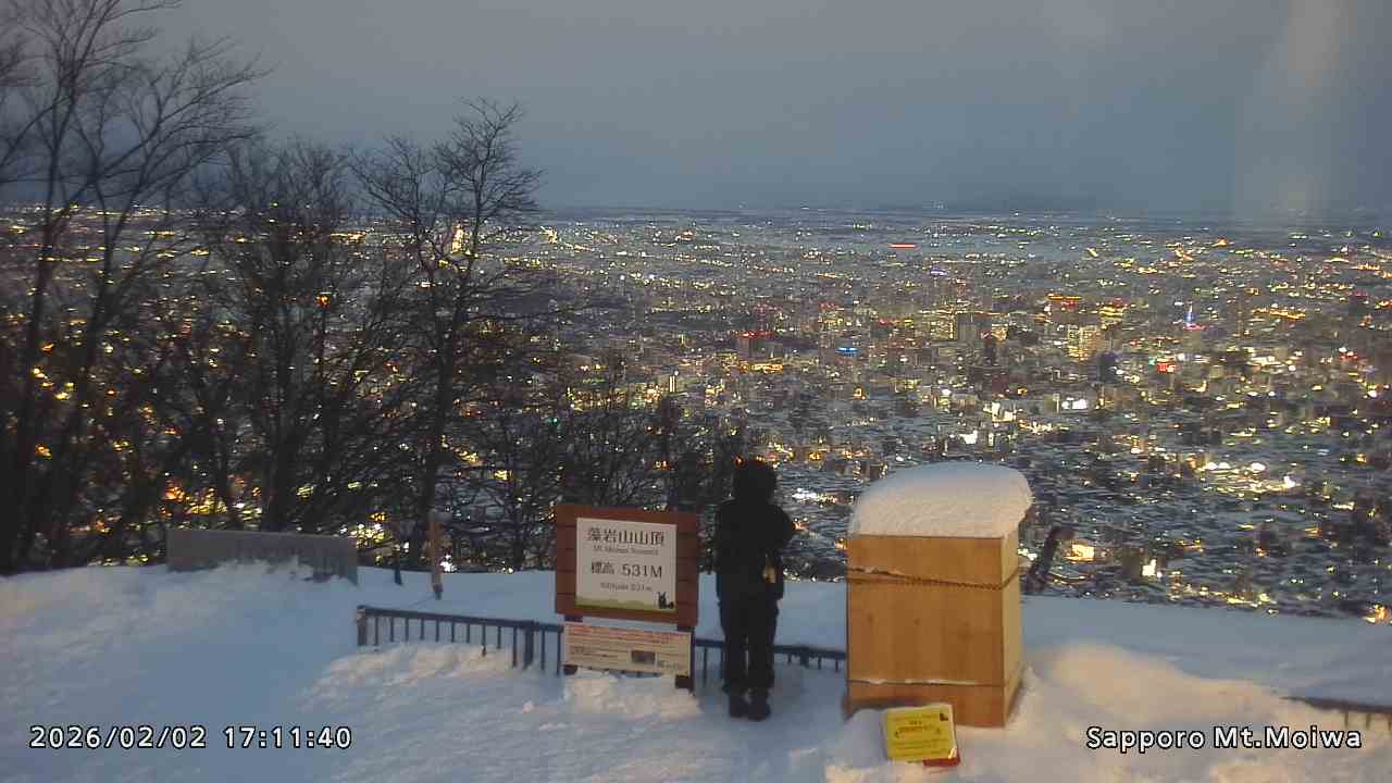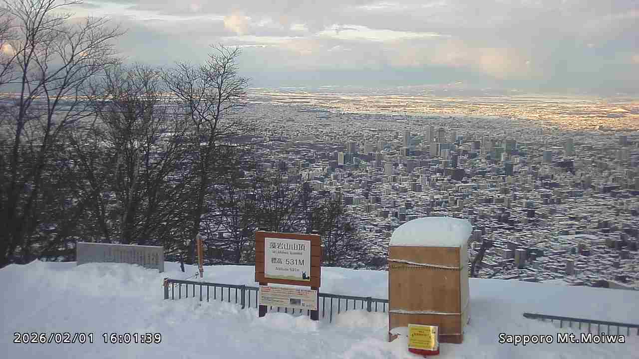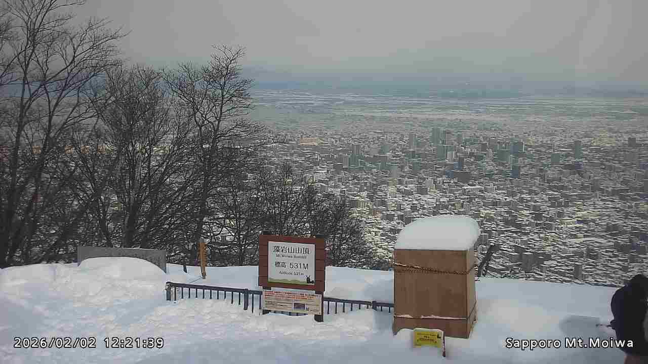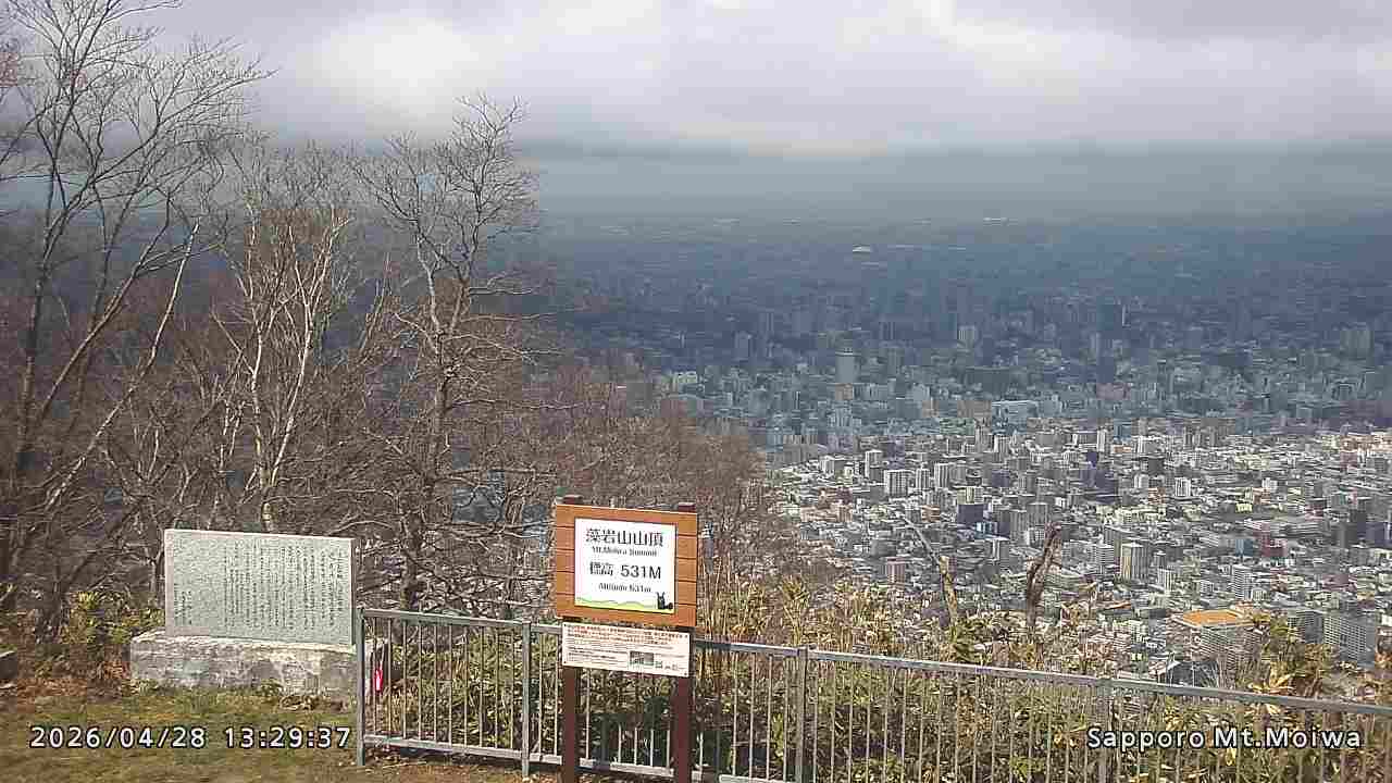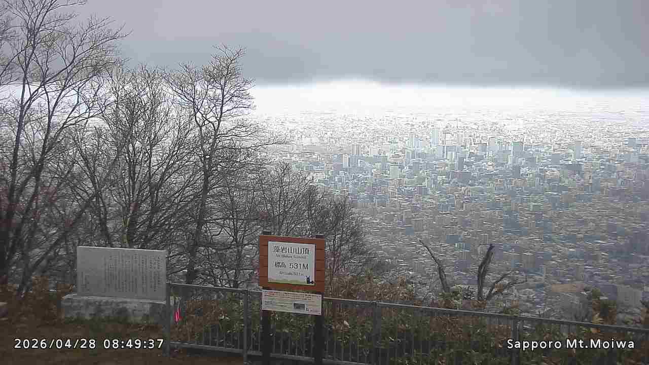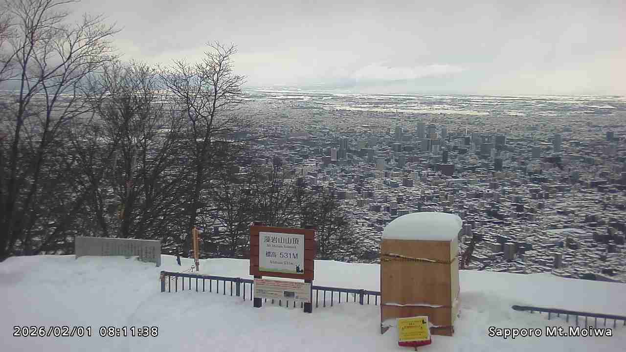 もいわ山山頂の標高看板前にカメラを設置しています。