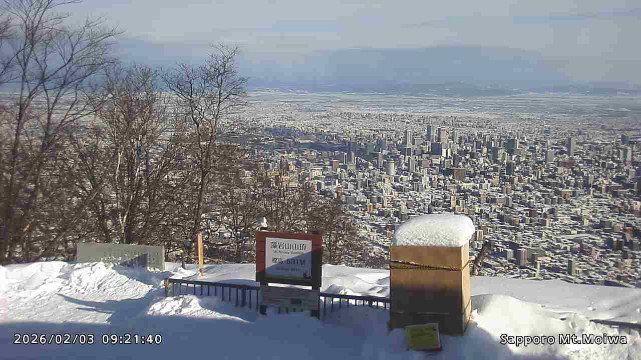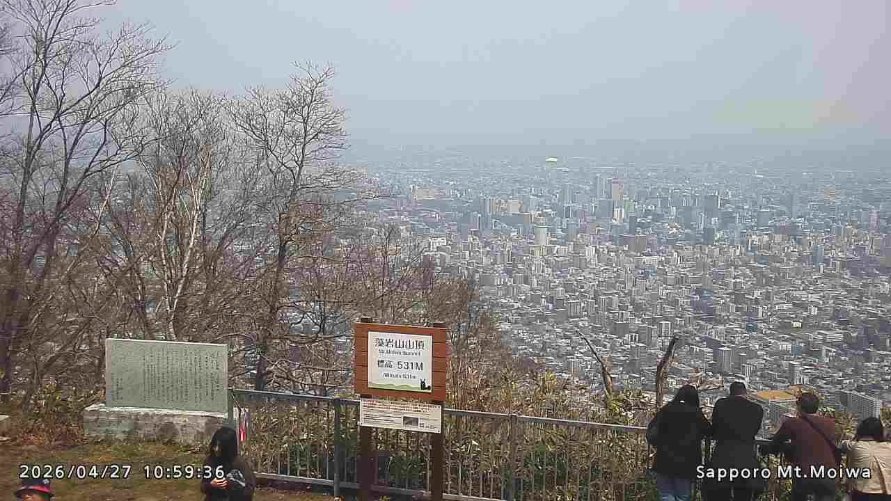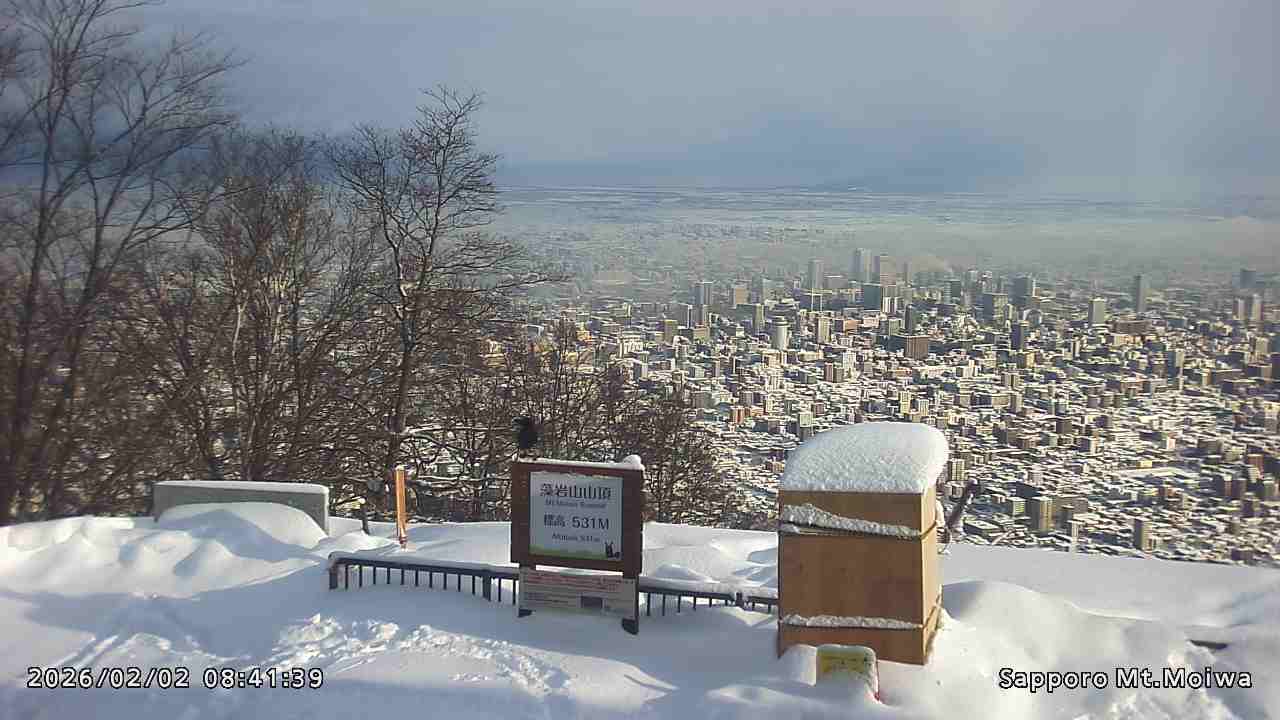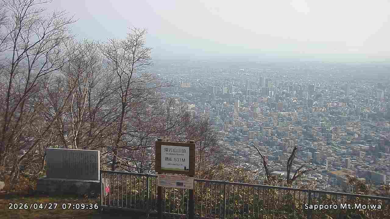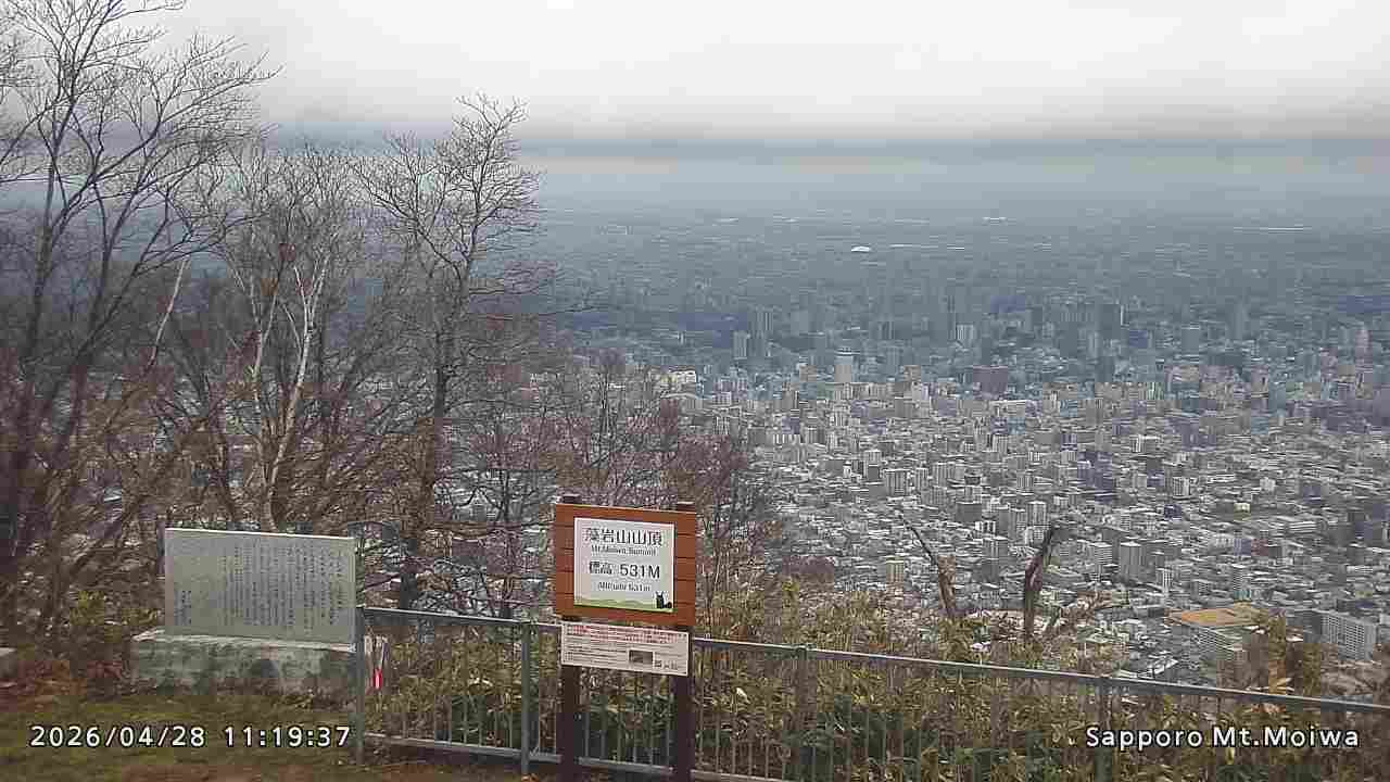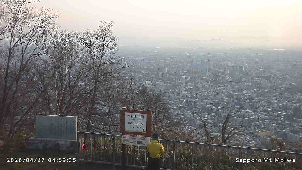 もいわ山山頂の標高看板前にカメラを設置しています。