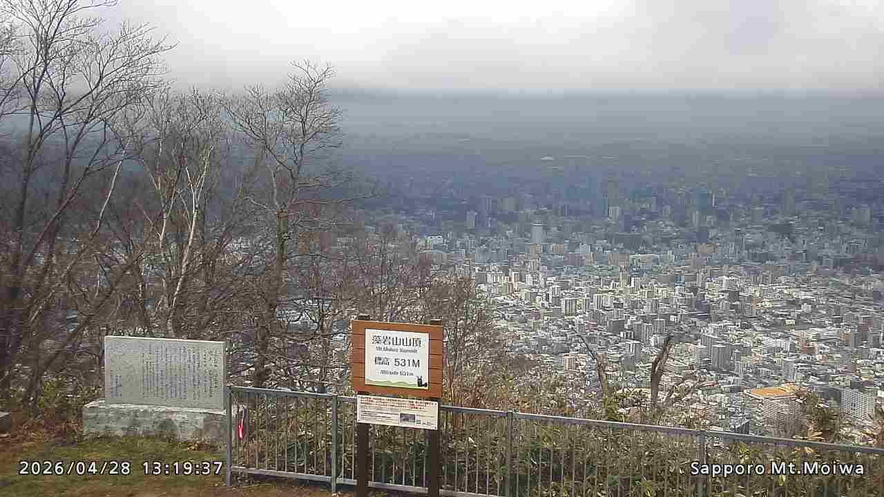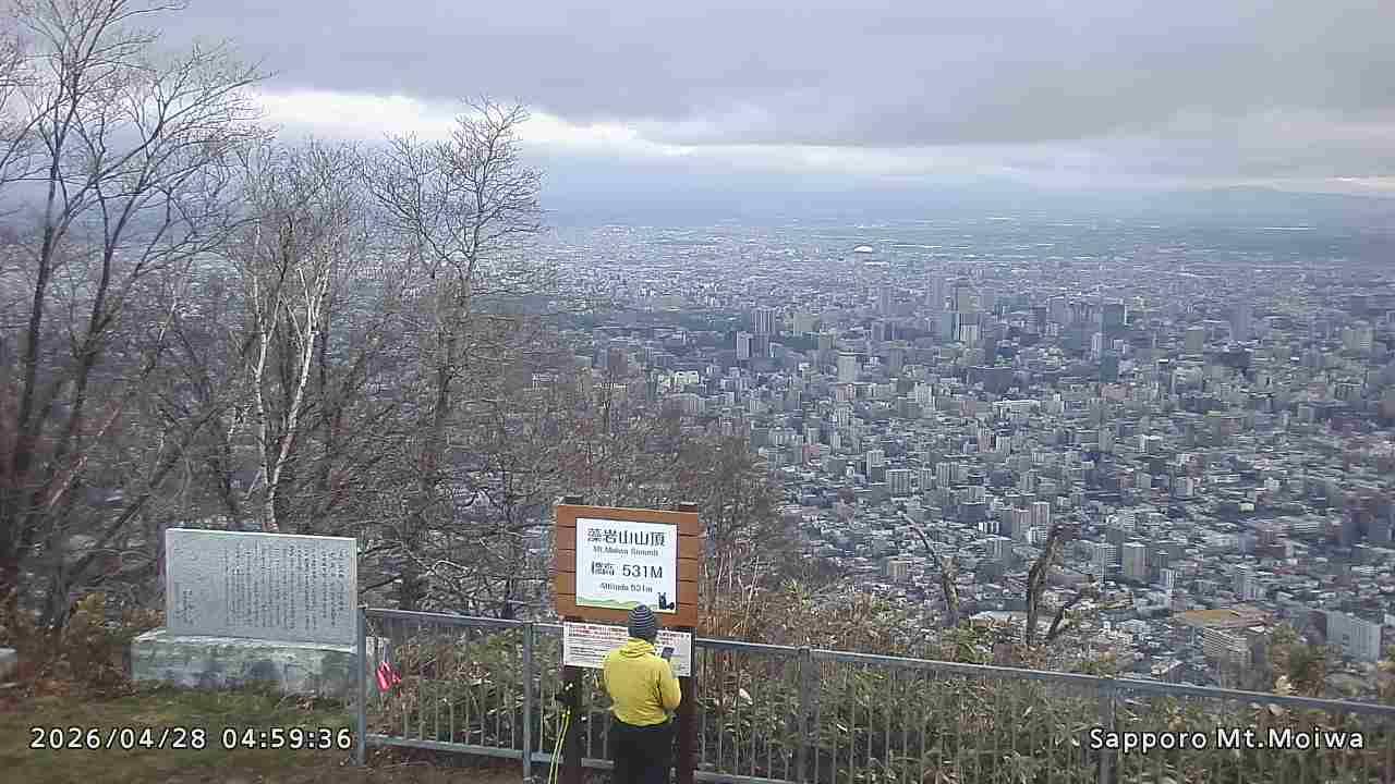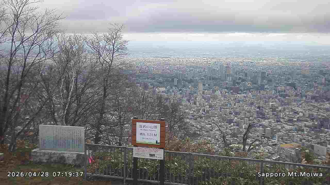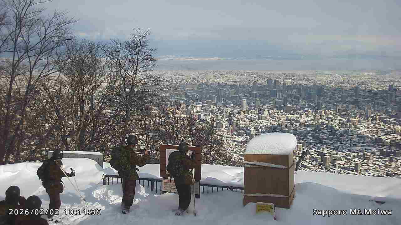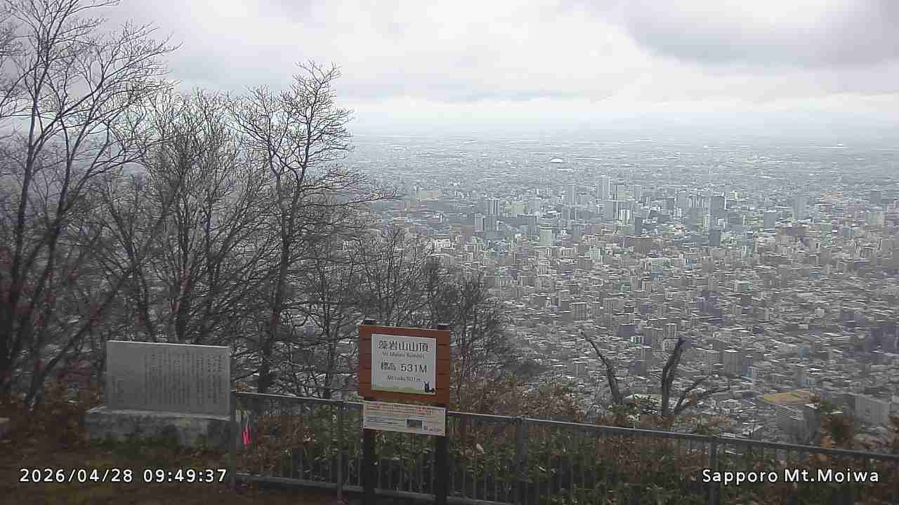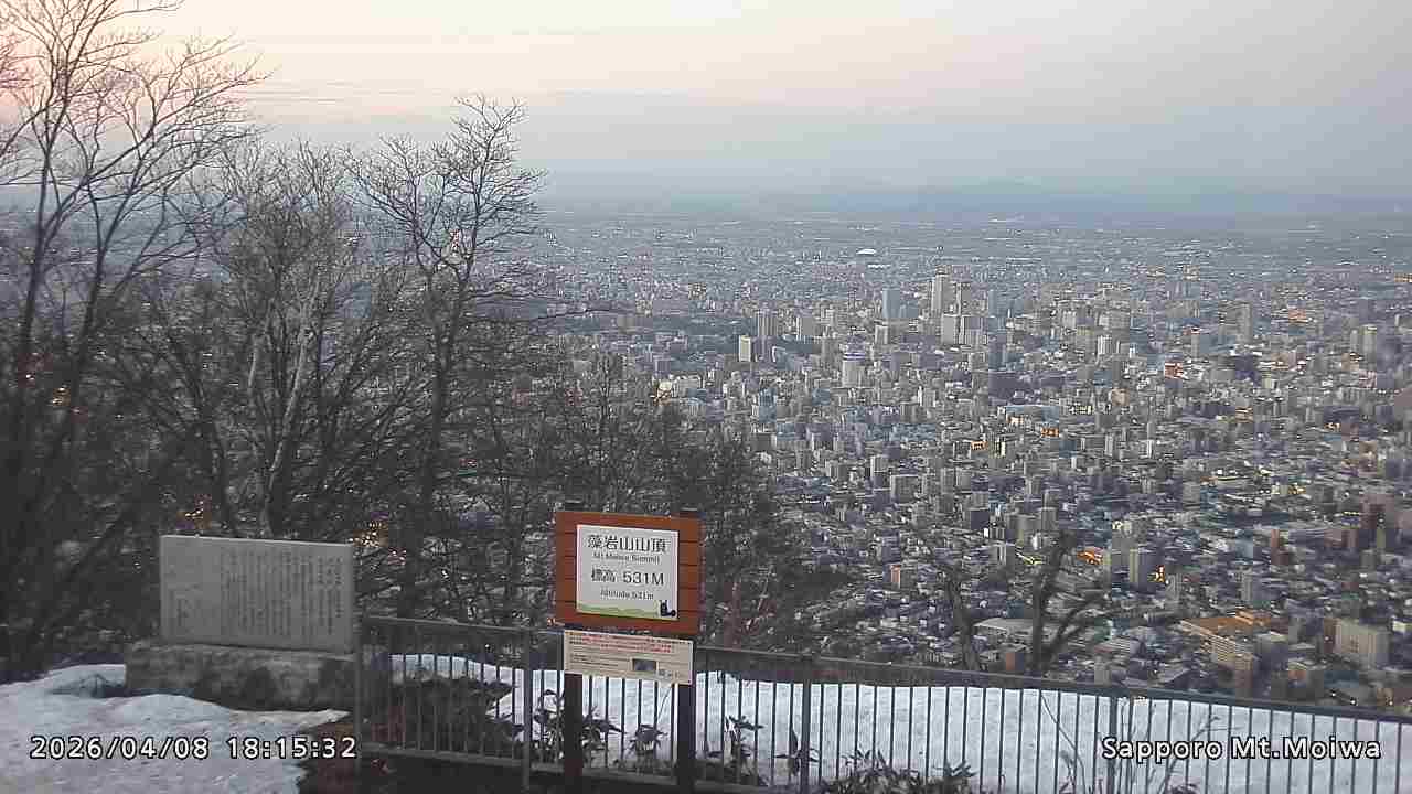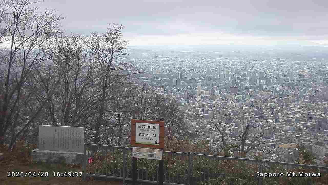 もいわ山山頂の標高看板前にカメラを設置しています。