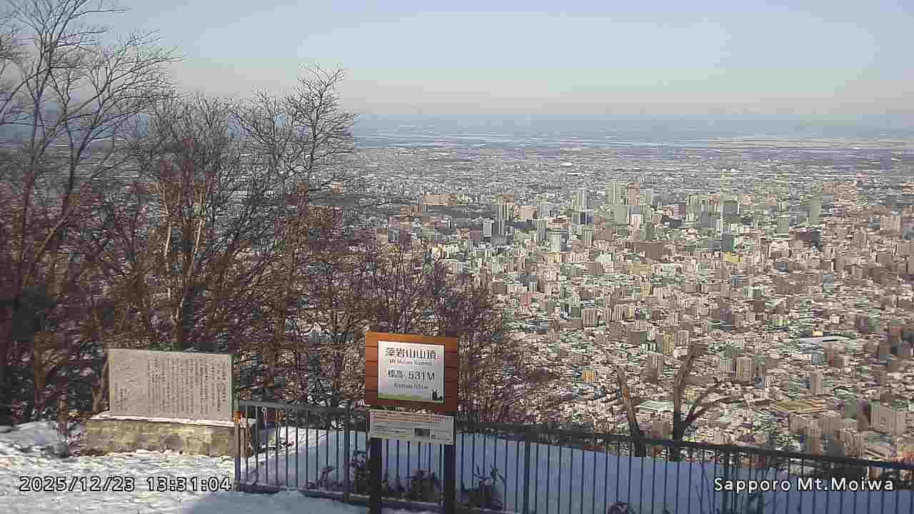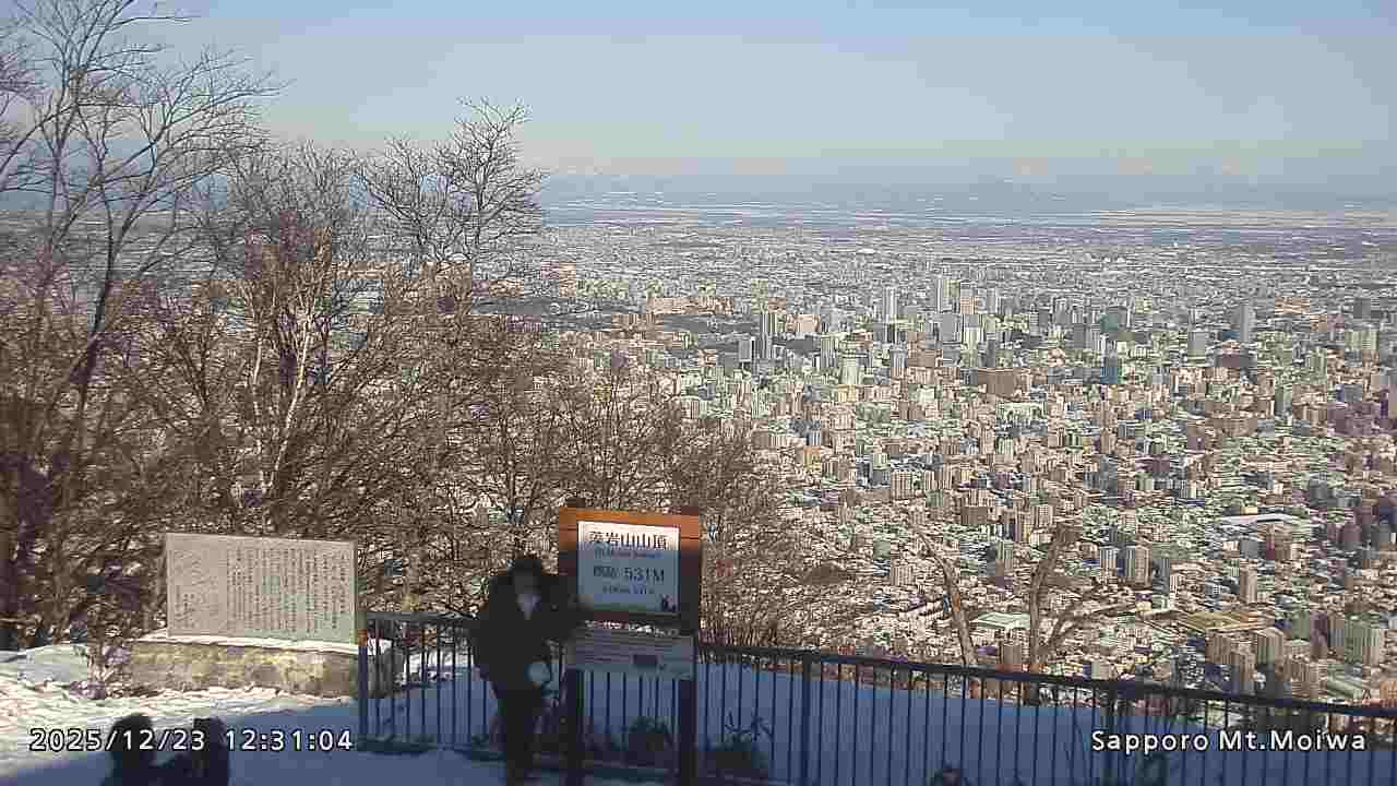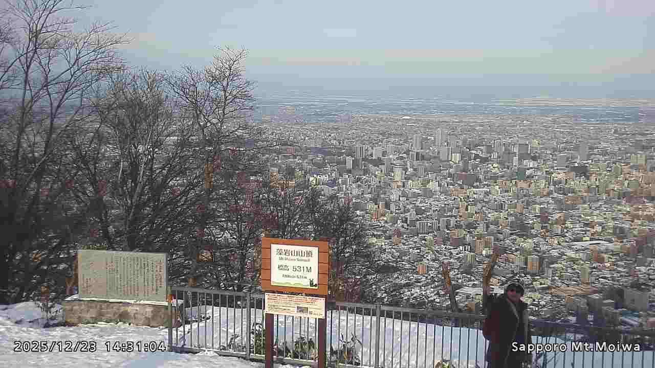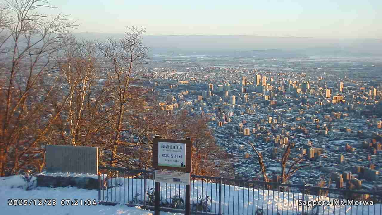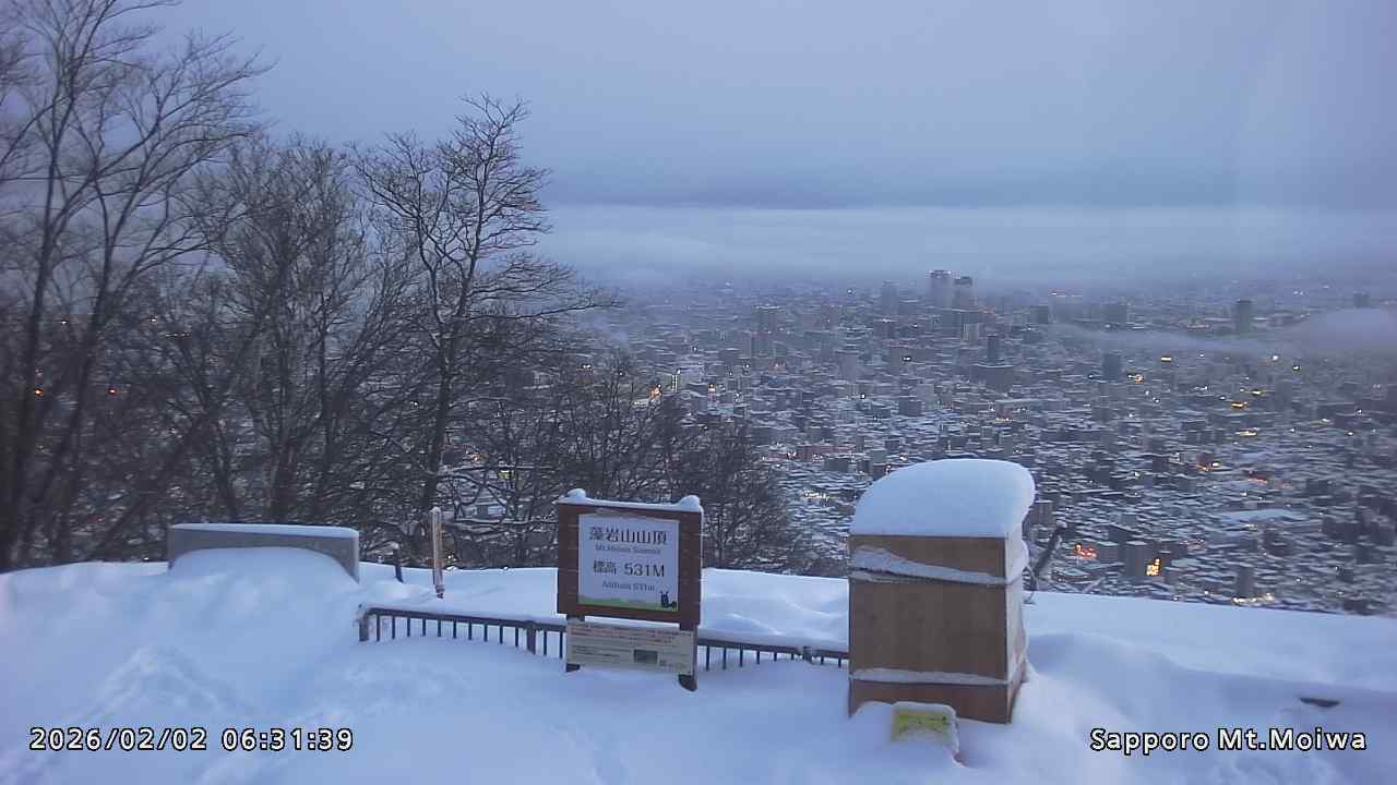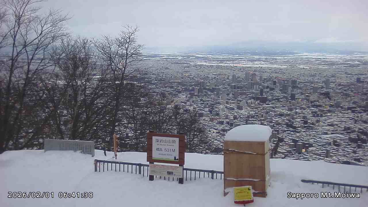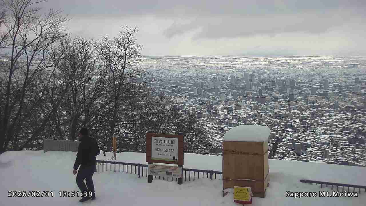 もいわ山山頂の標高看板前にカメラを設置しています。