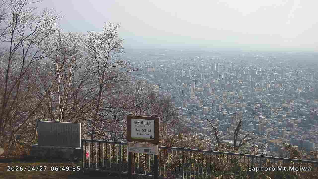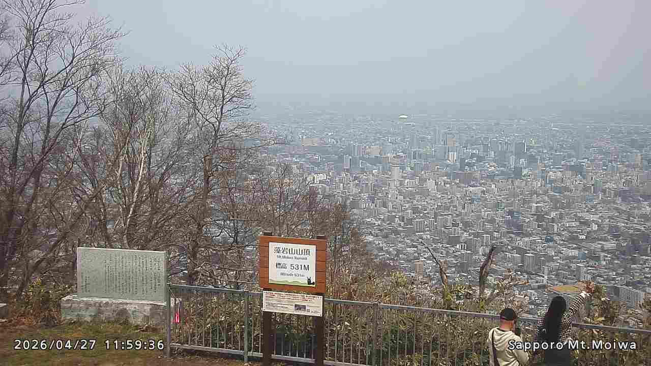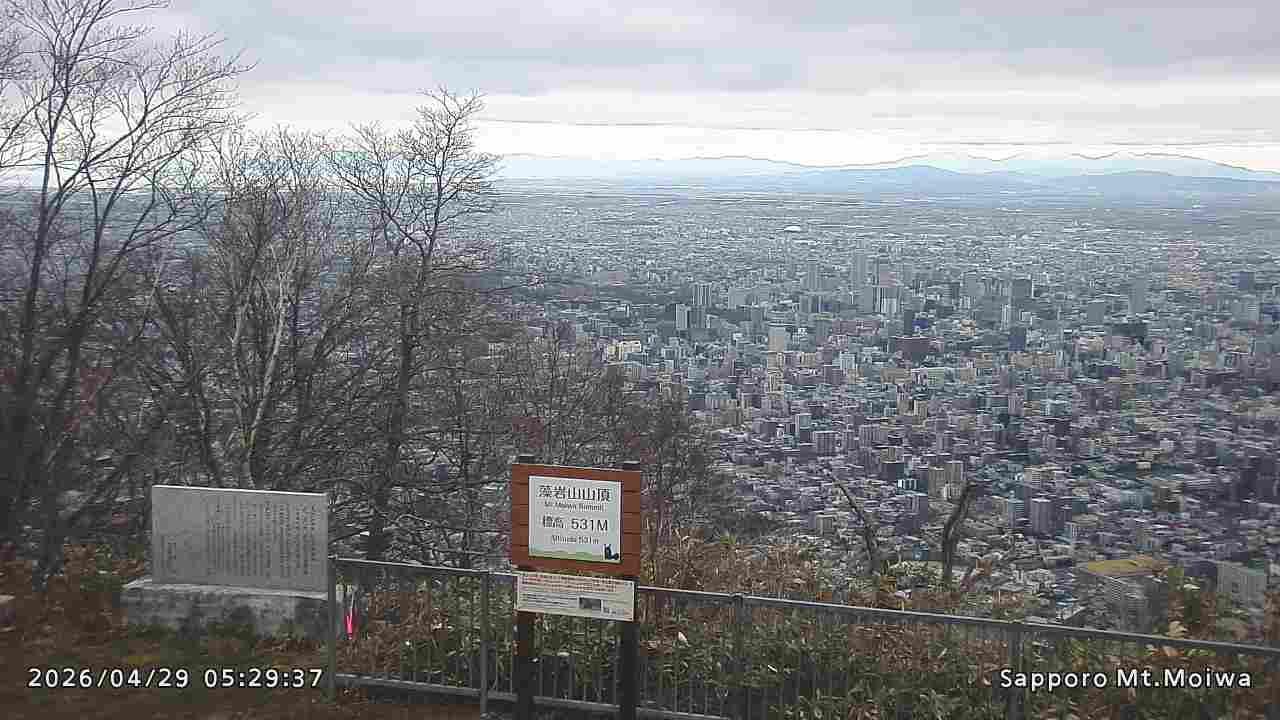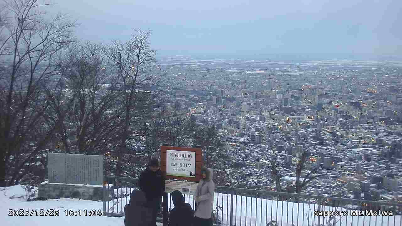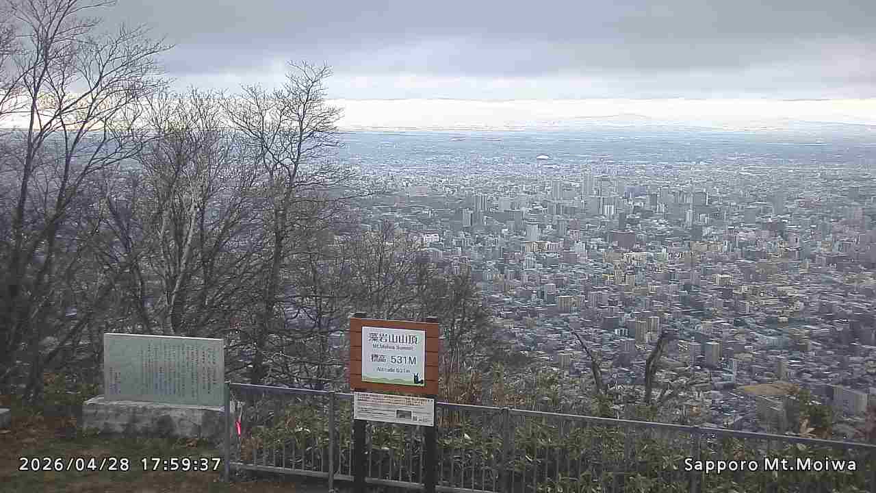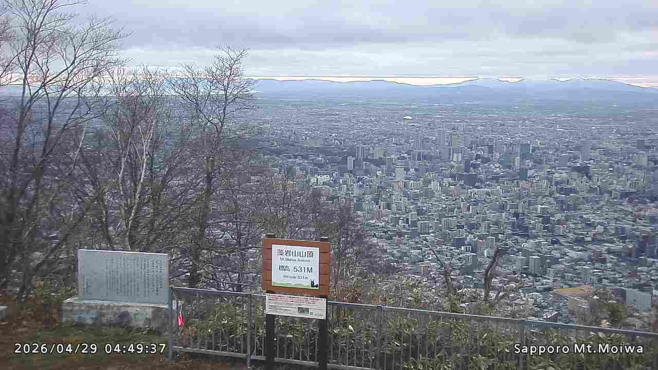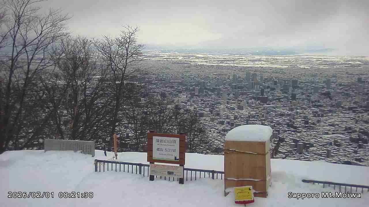 もいわ山山頂の標高看板前にカメラを設置しています。