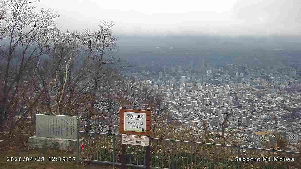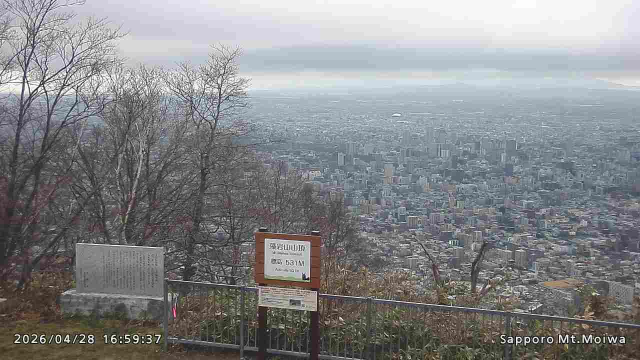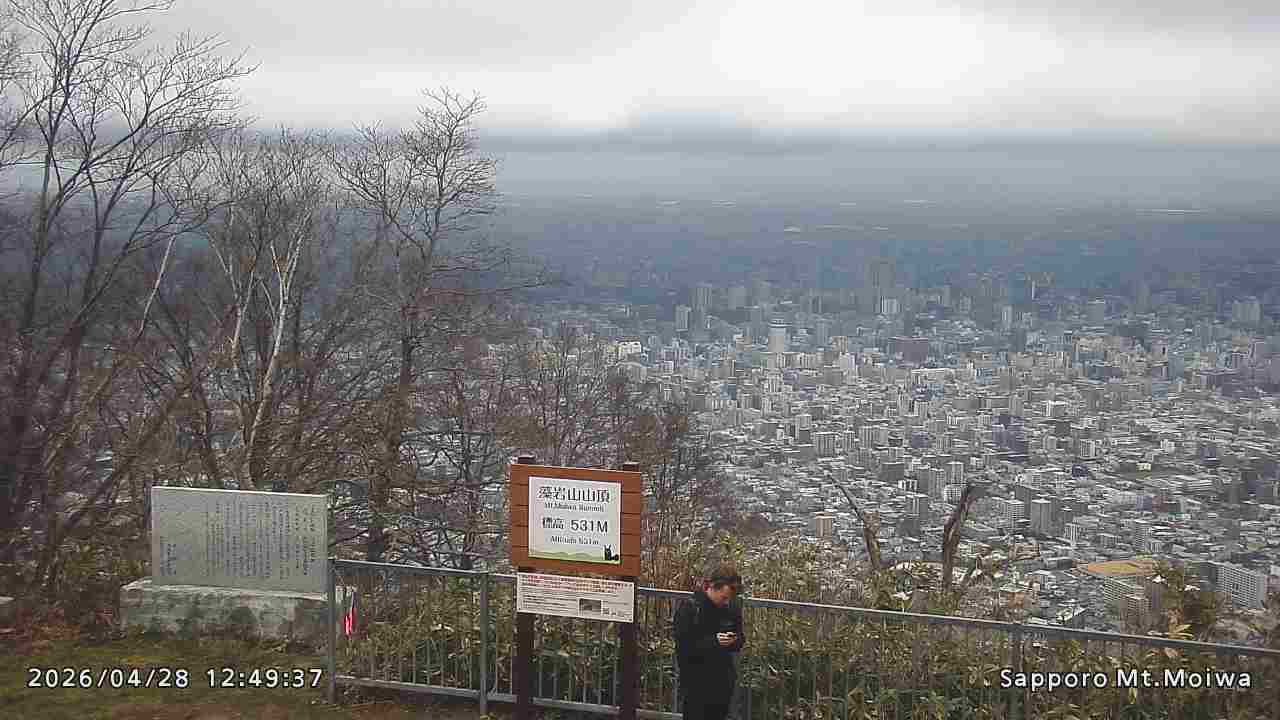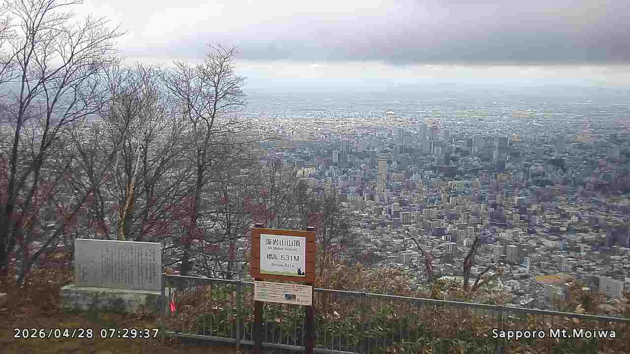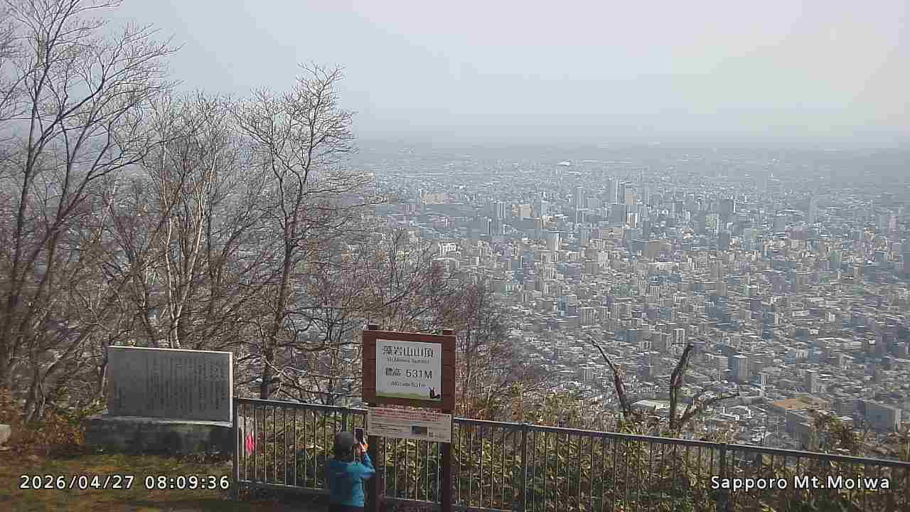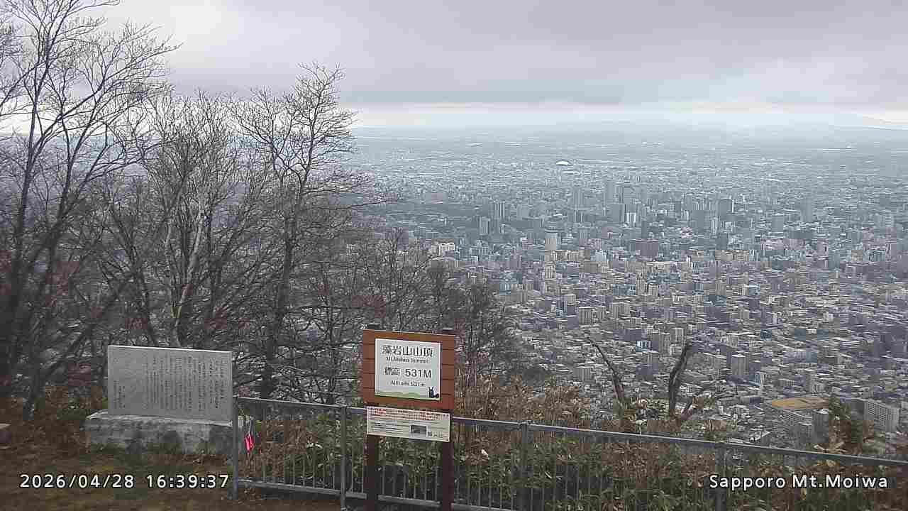もいわ山山頂の標高看板前にカメラを設置しています。