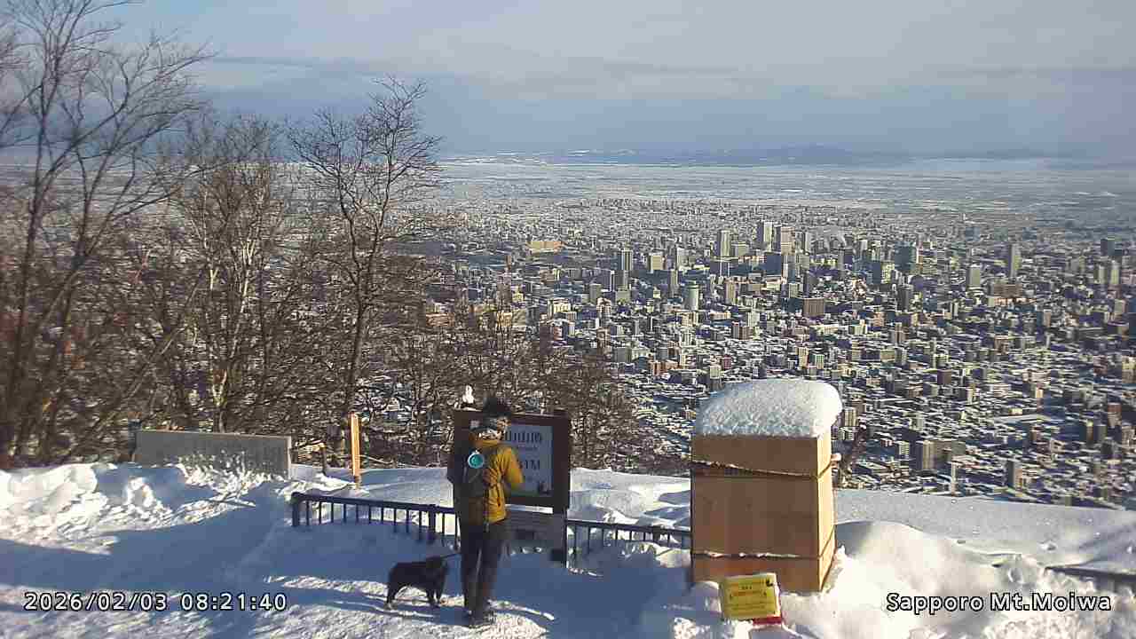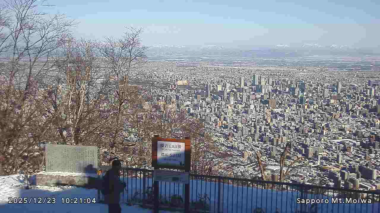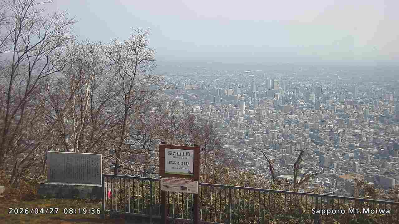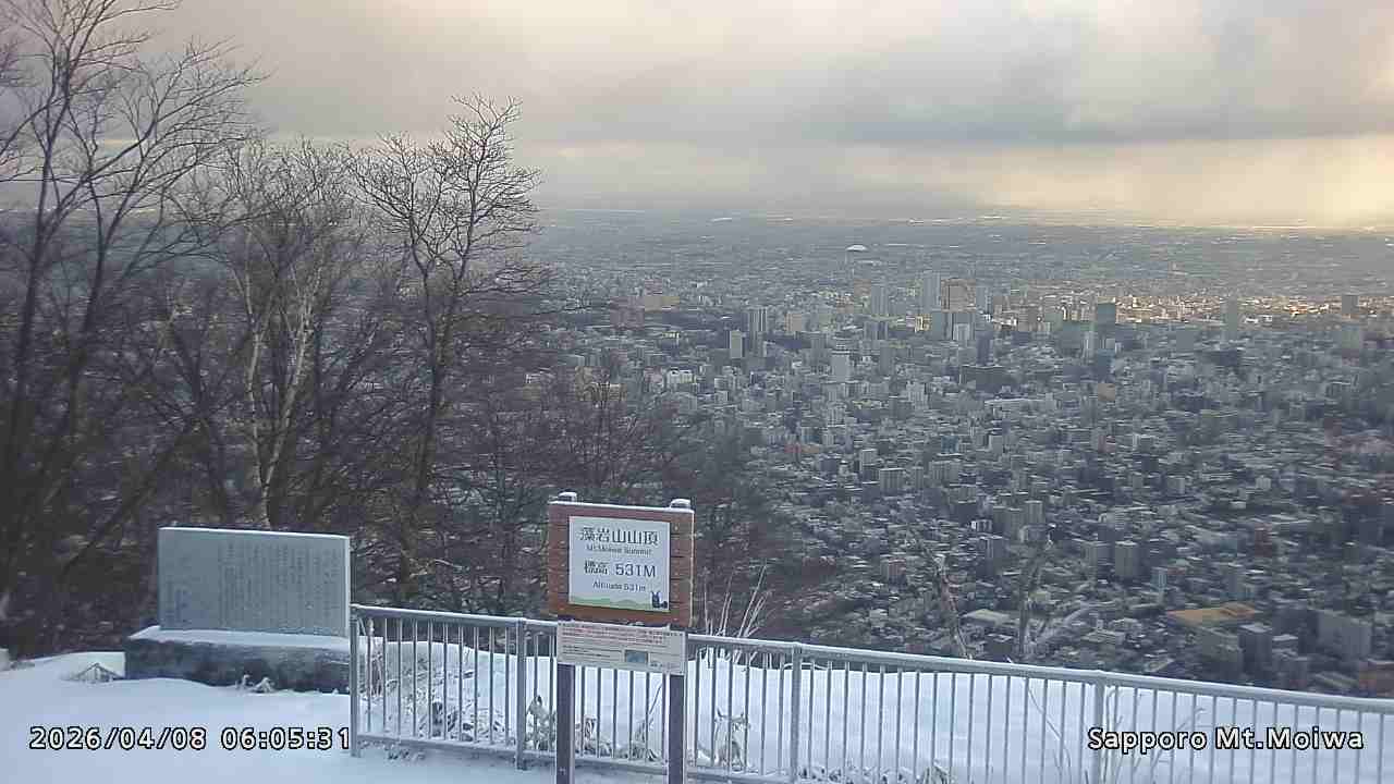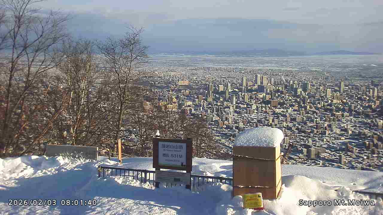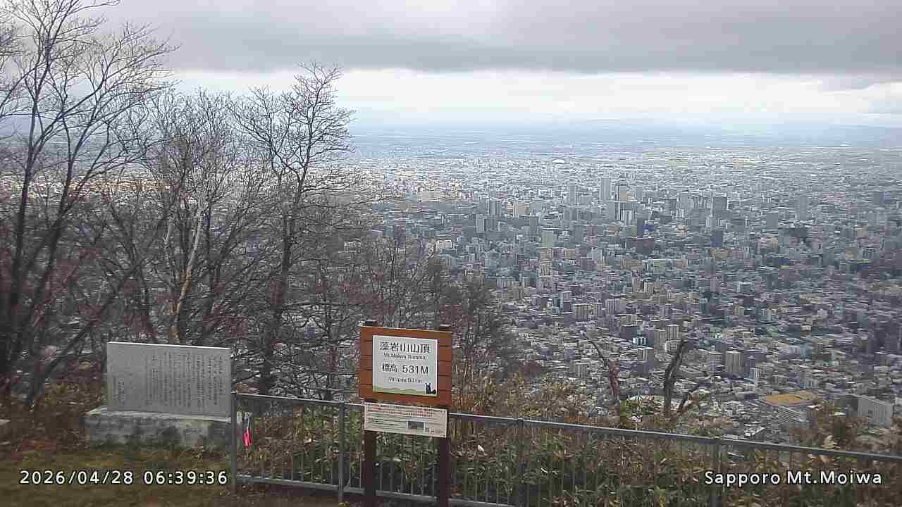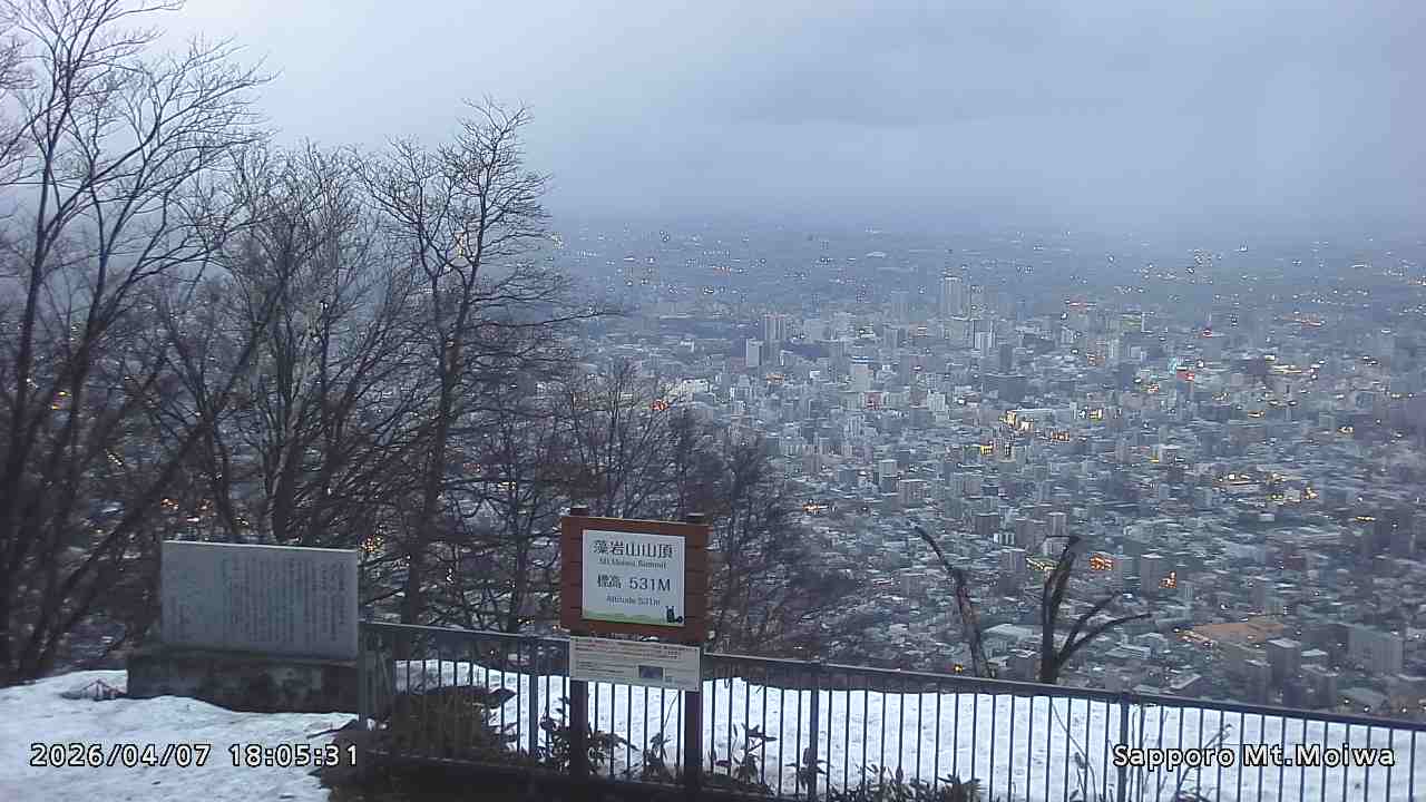 もいわ山山頂の標高看板前にカメラを設置しています。