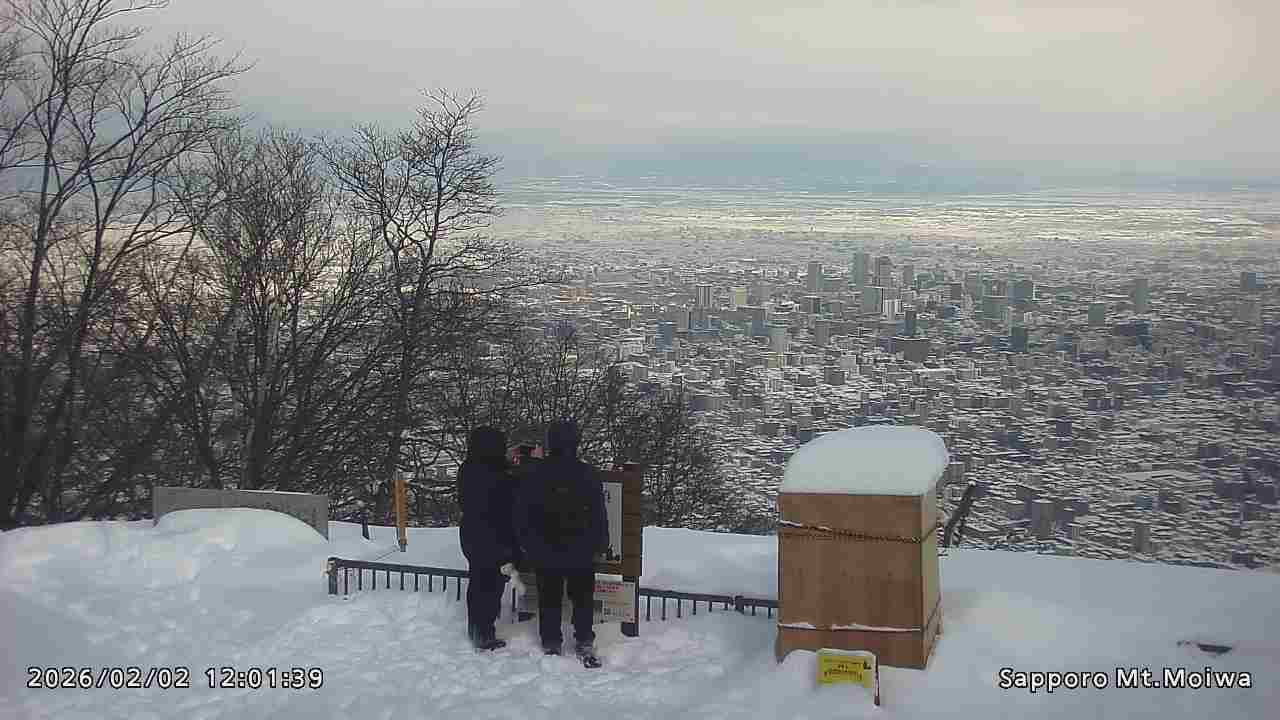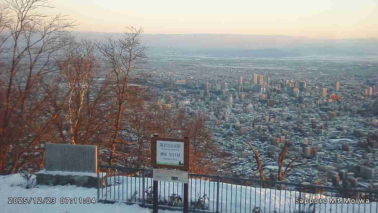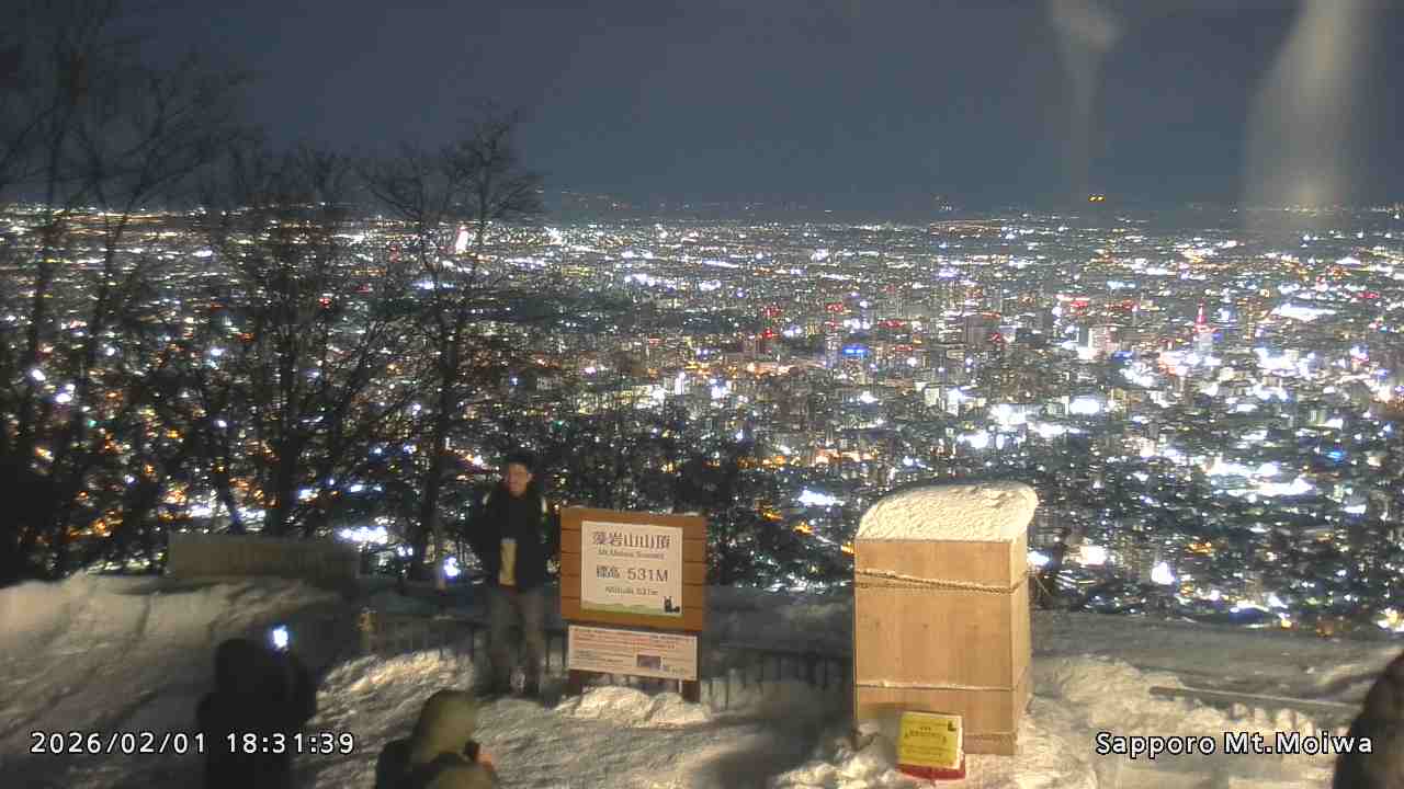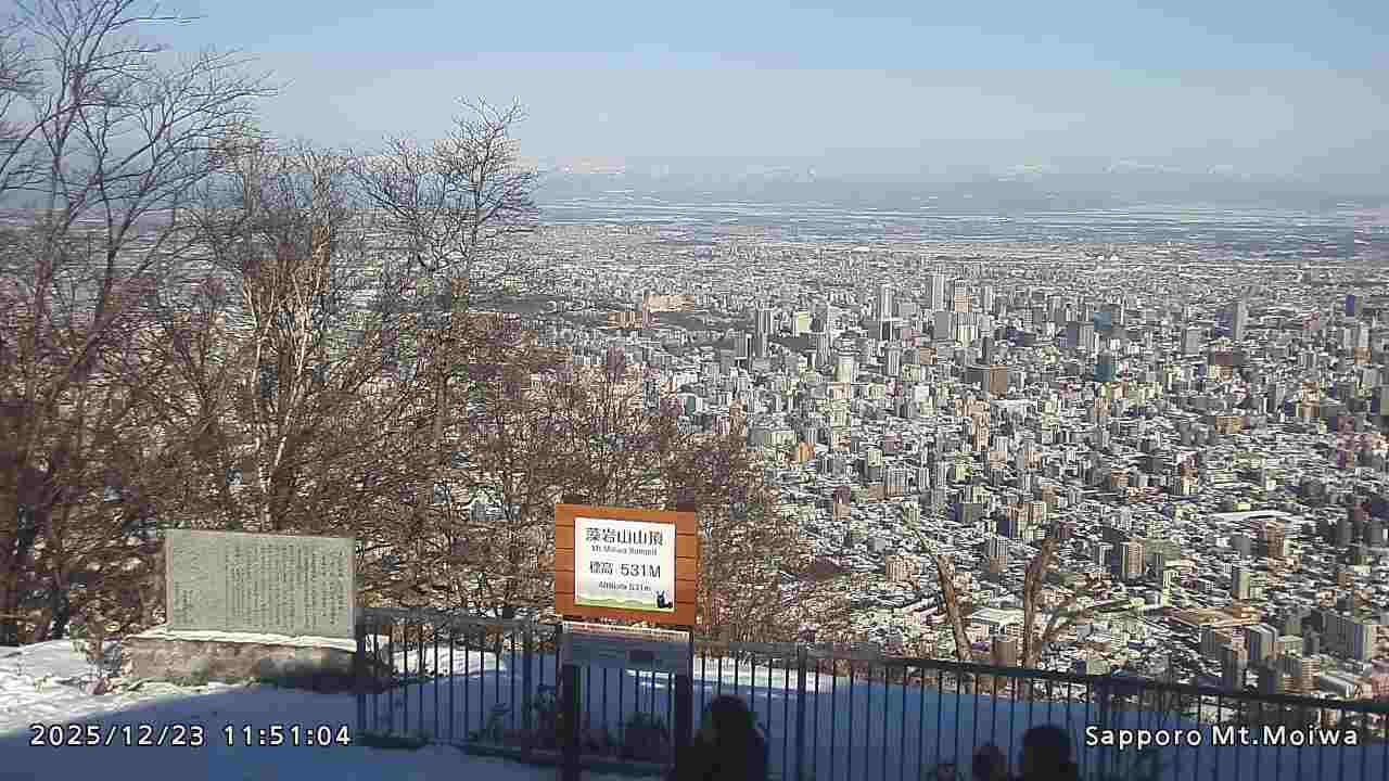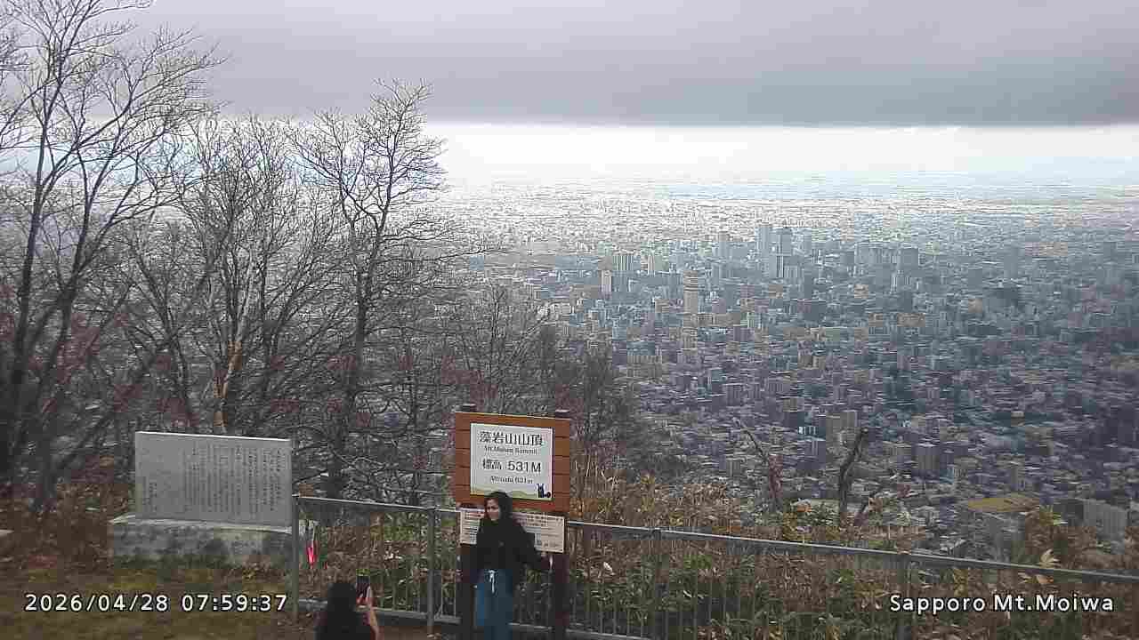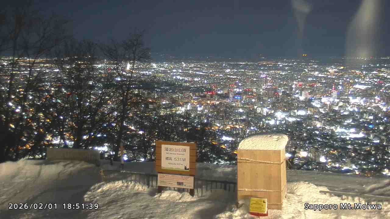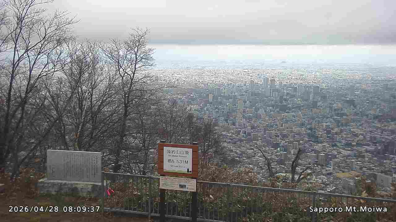 もいわ山山頂の標高看板前にカメラを設置しています。
