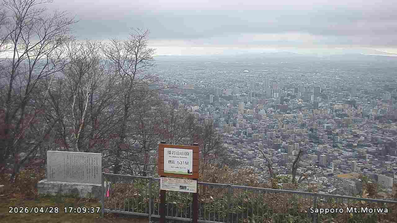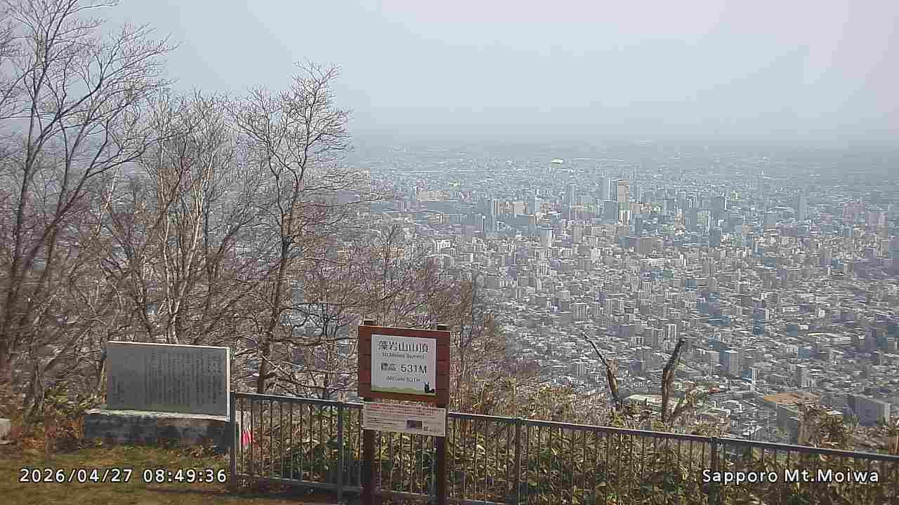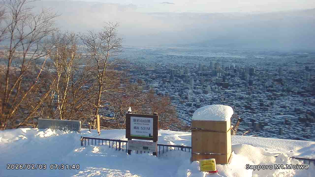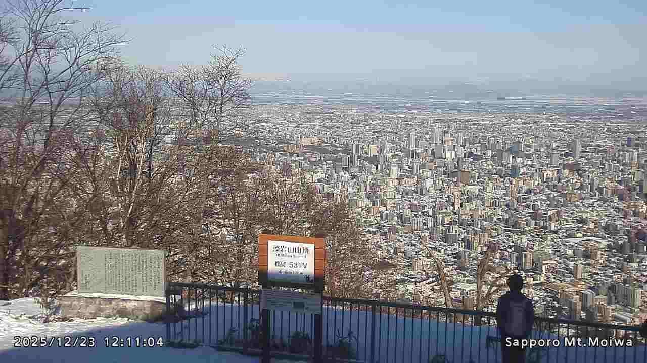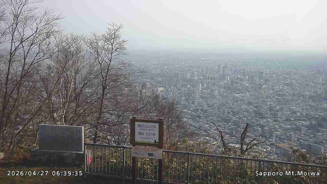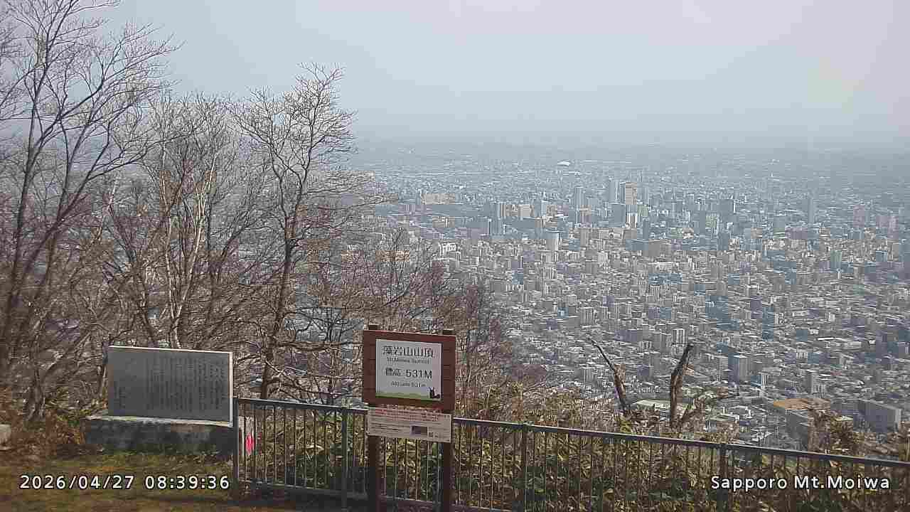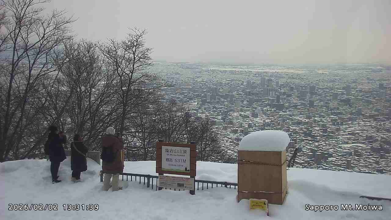 もいわ山山頂の標高看板前にカメラを設置しています。