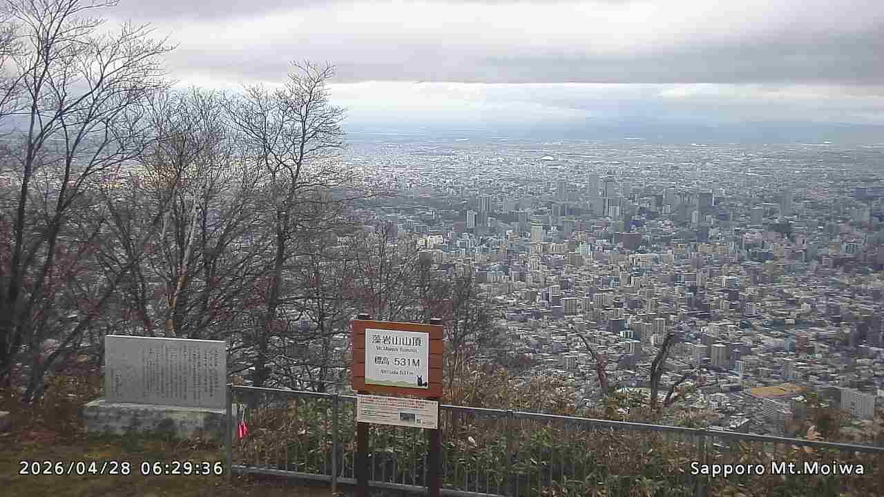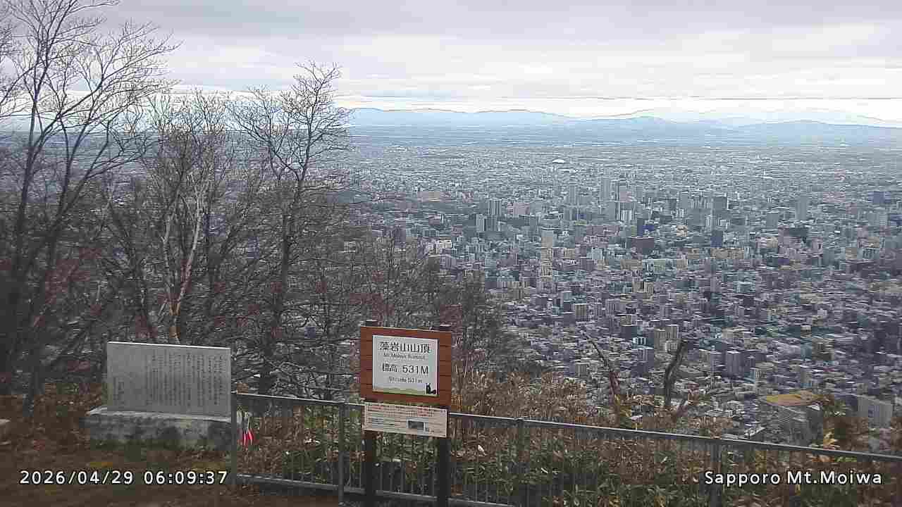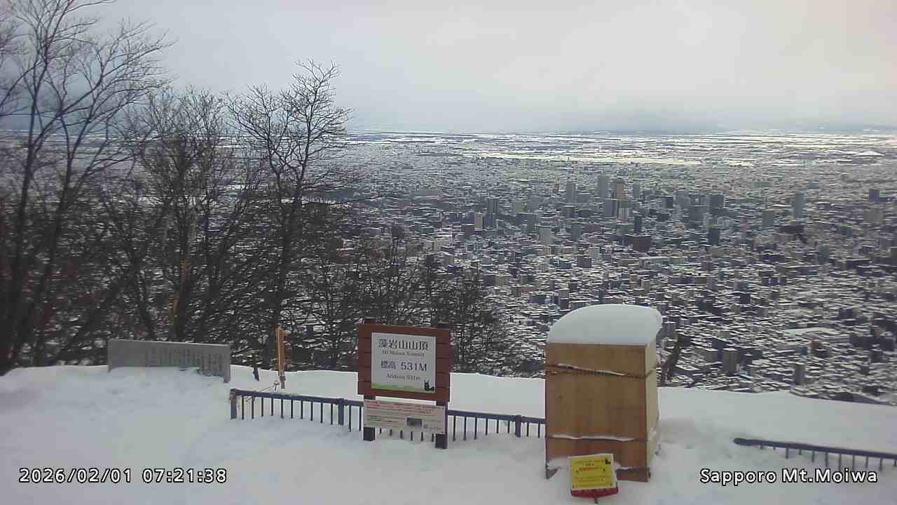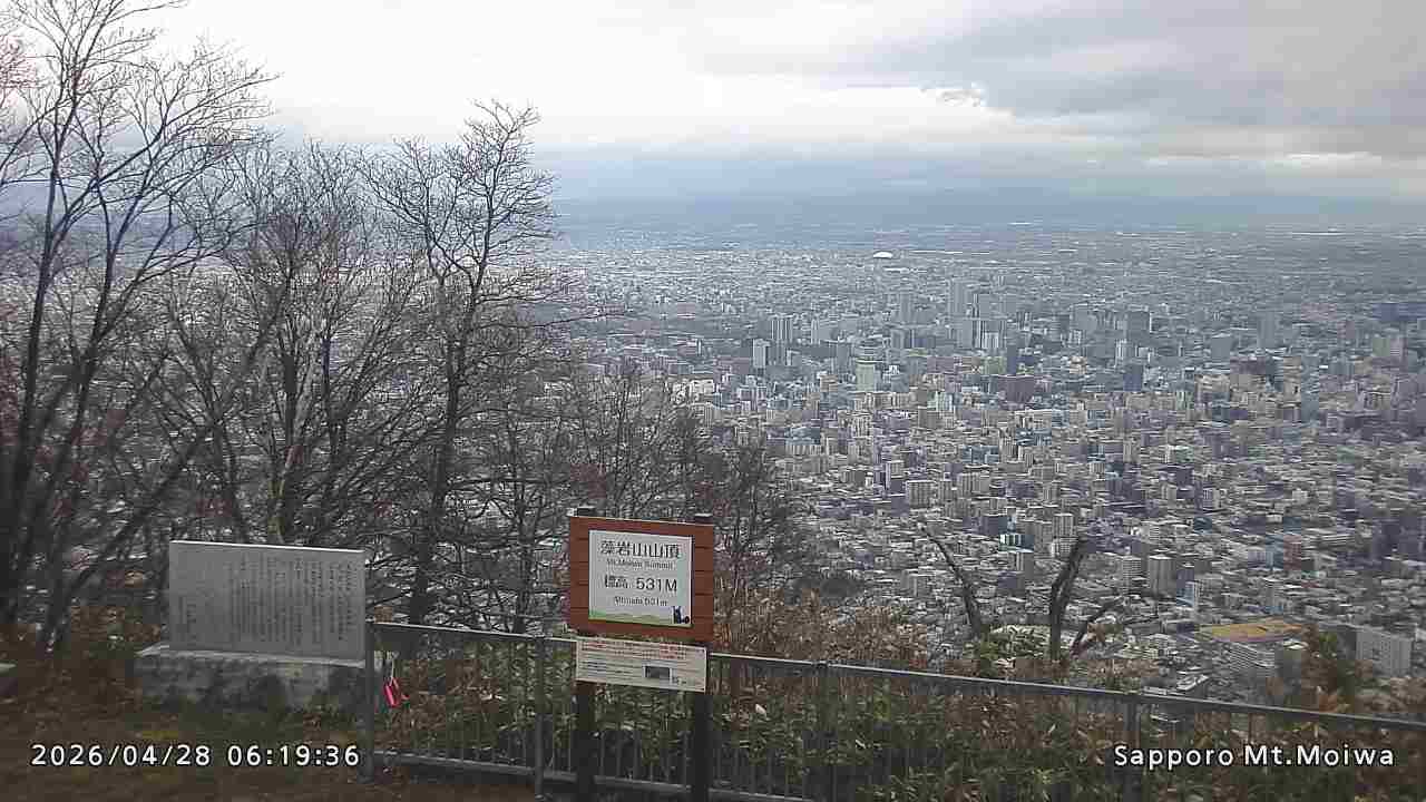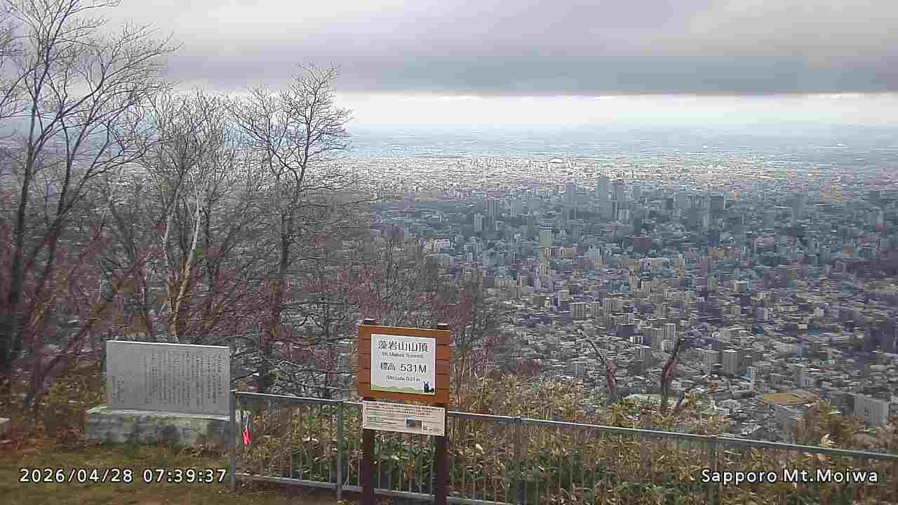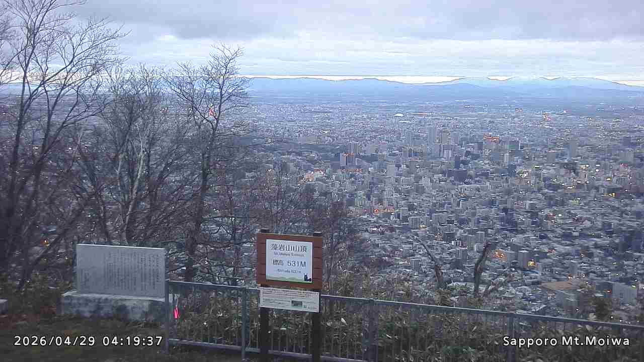 もいわ山山頂の標高看板前にカメラを設置しています。