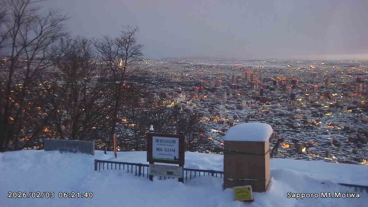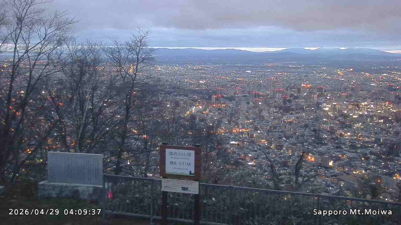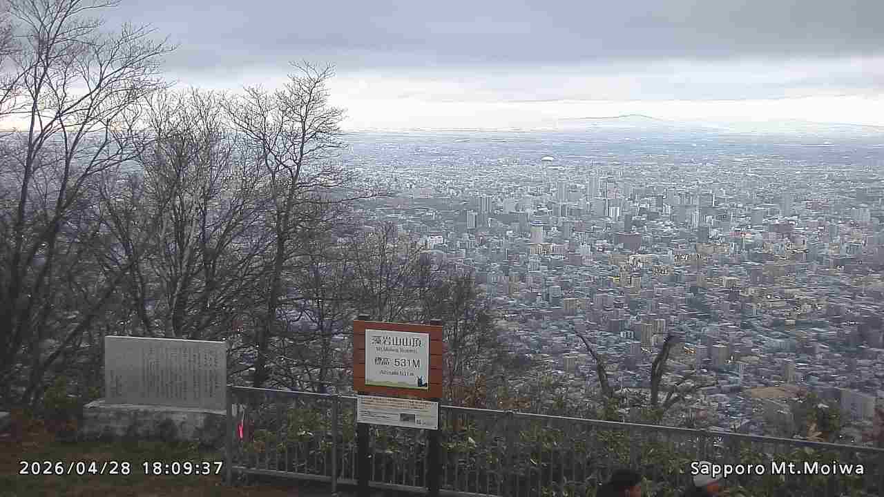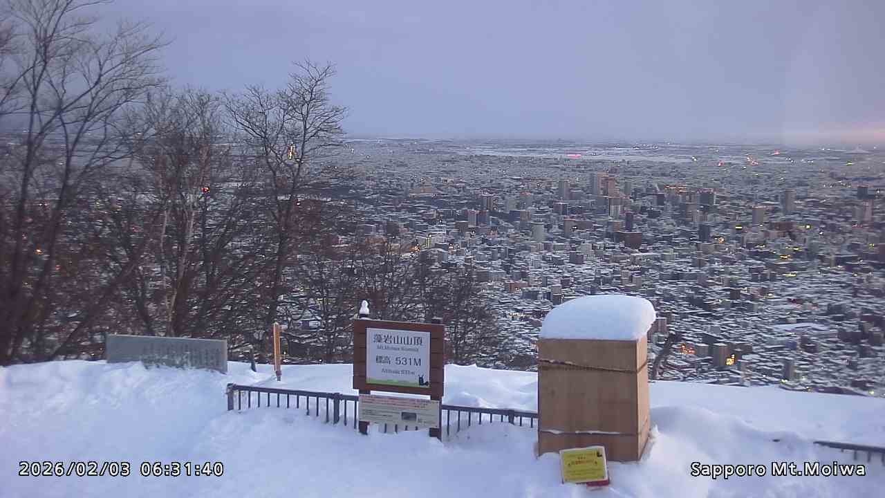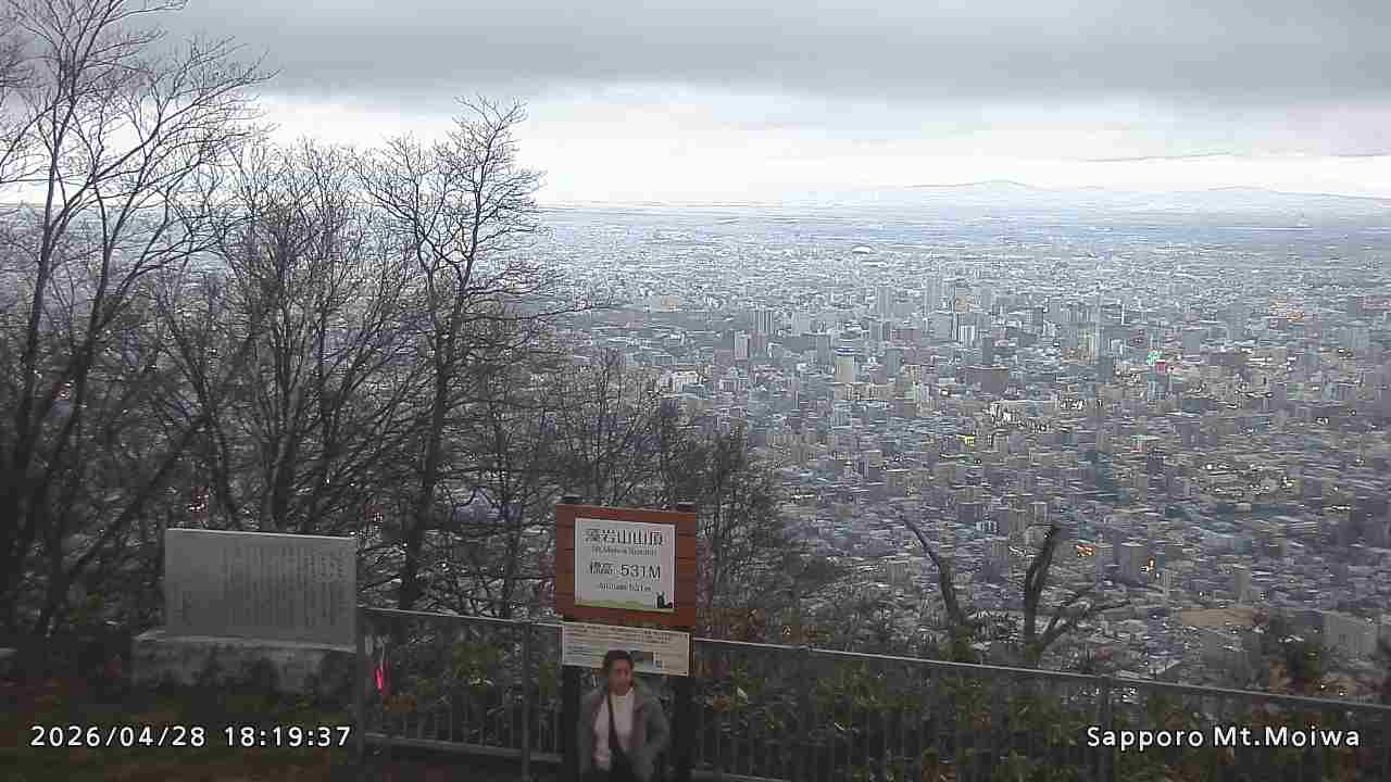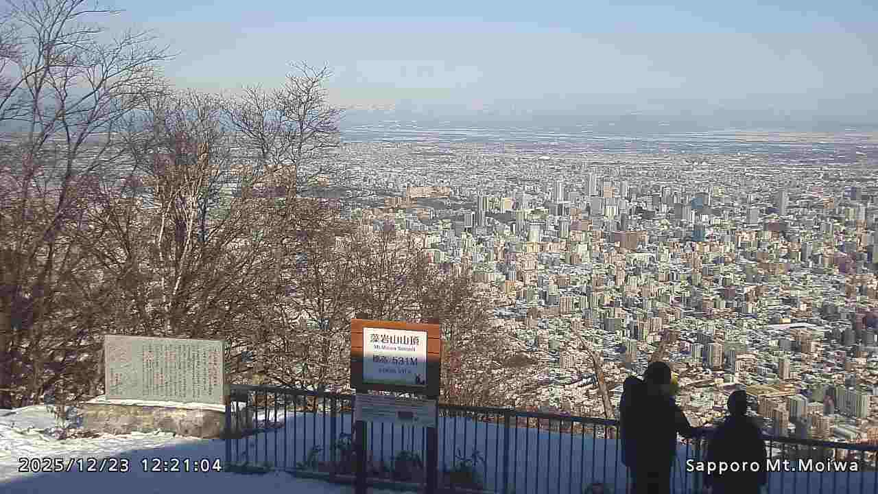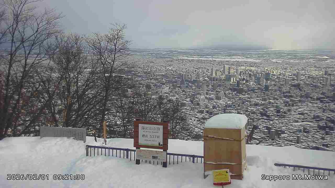 もいわ山山頂の標高看板前にカメラを設置しています。